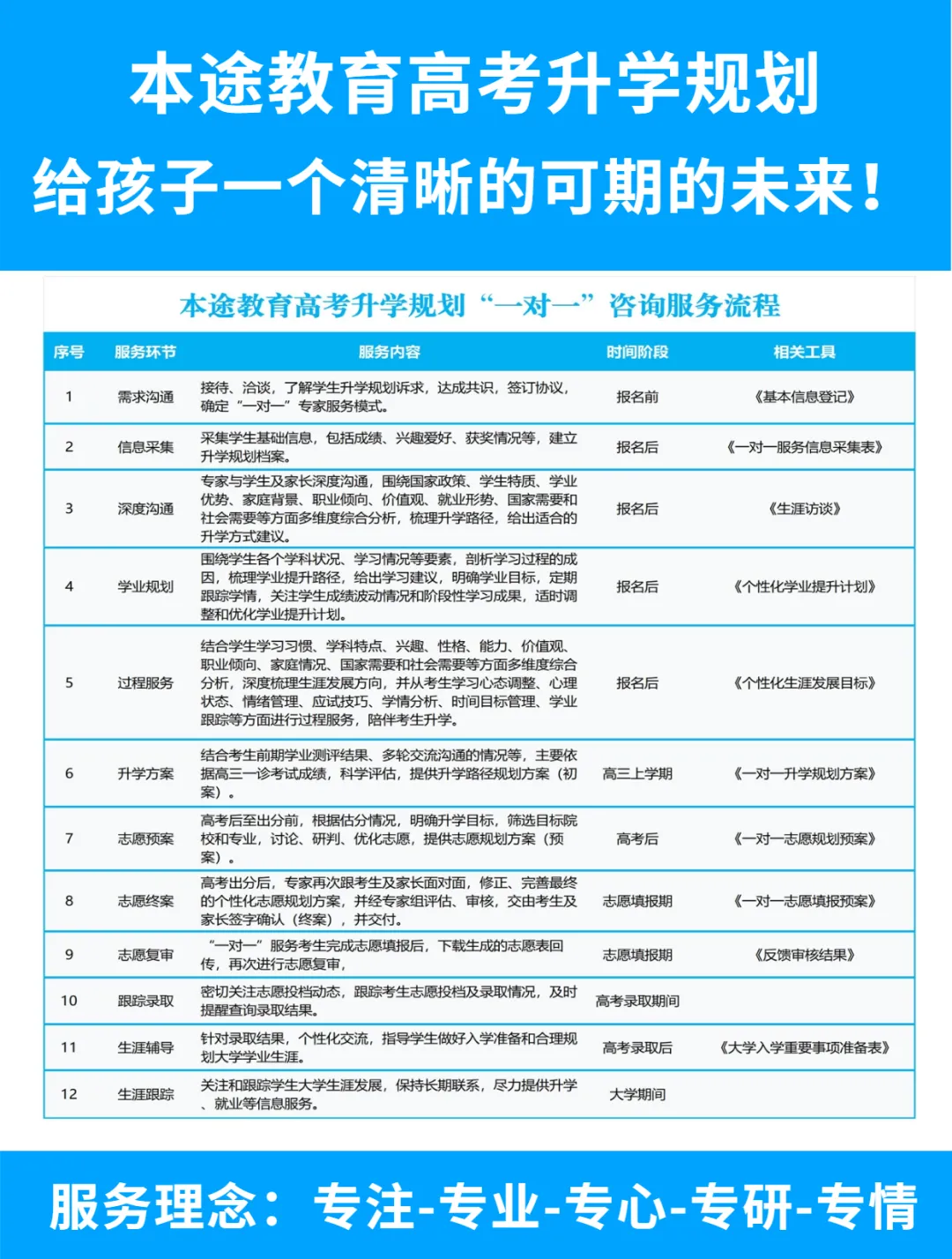 本途教育升学规划专家团及志愿填报一对一服务项目