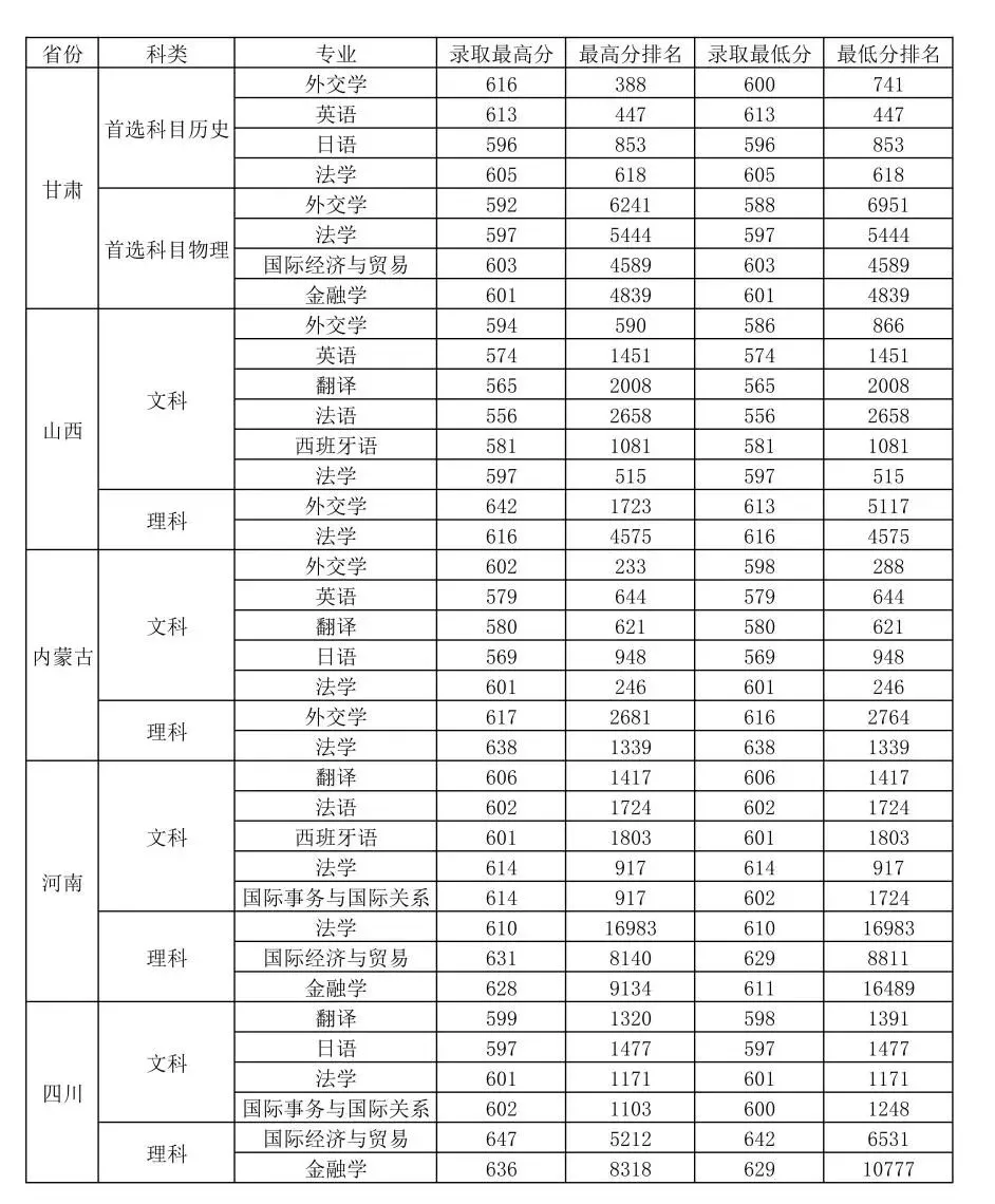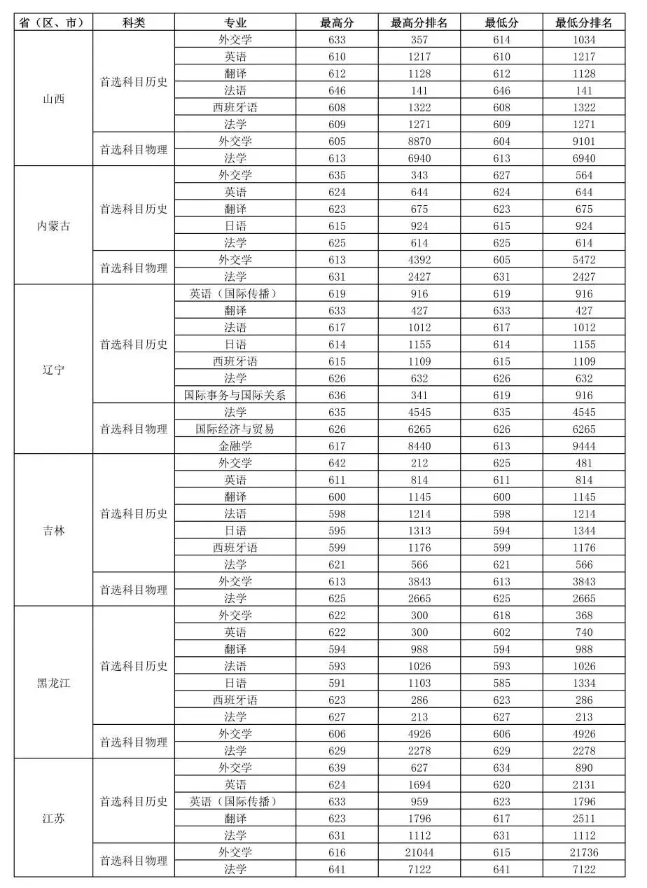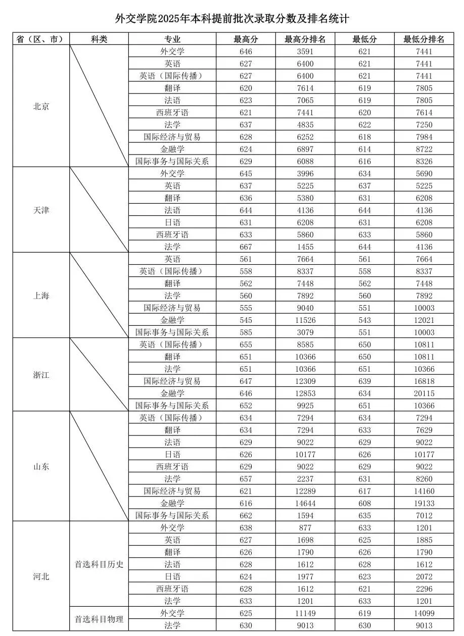 >【外交学院】2023—2025高考专业录取分数线及位次