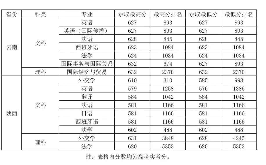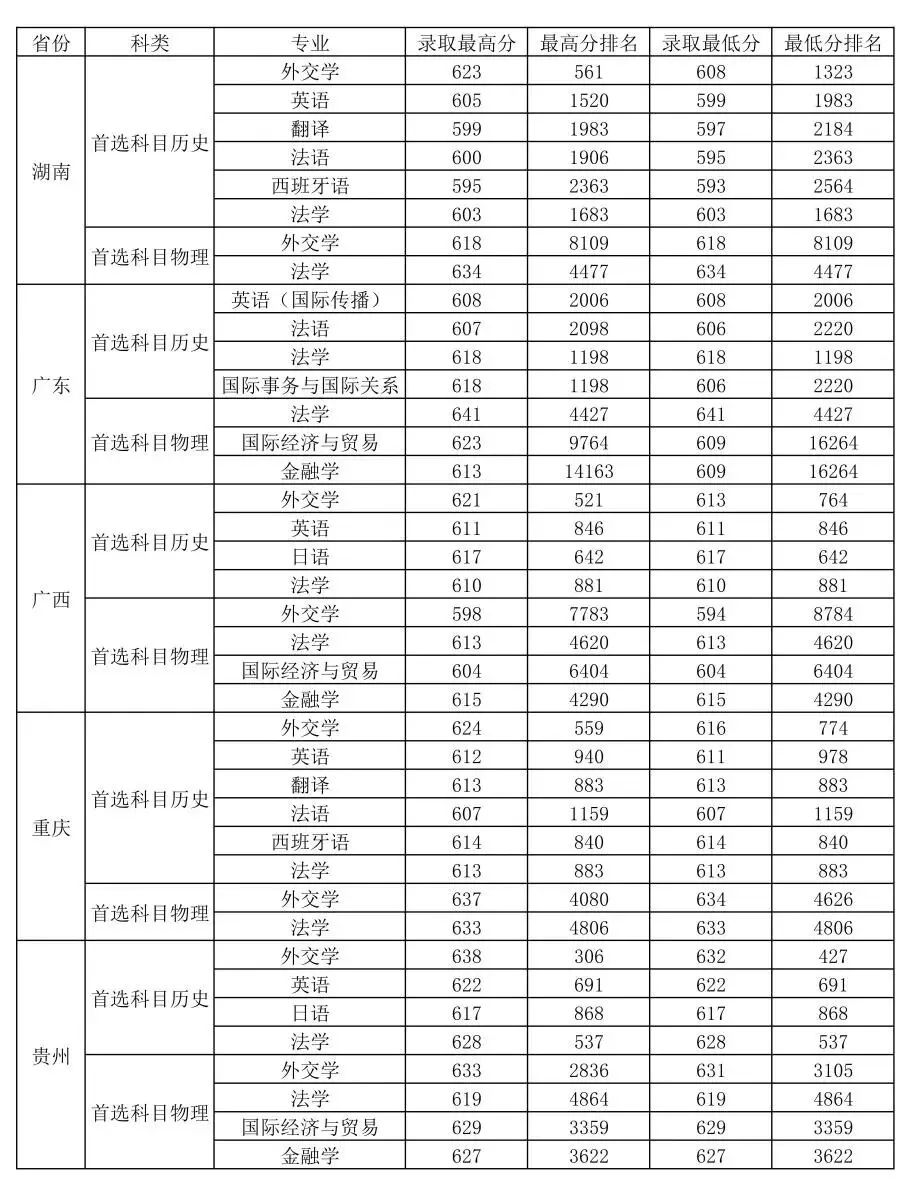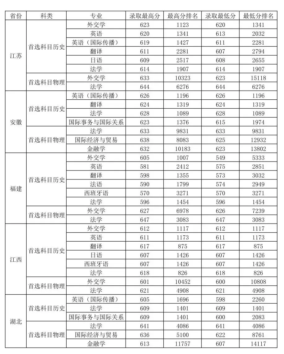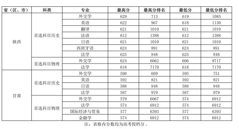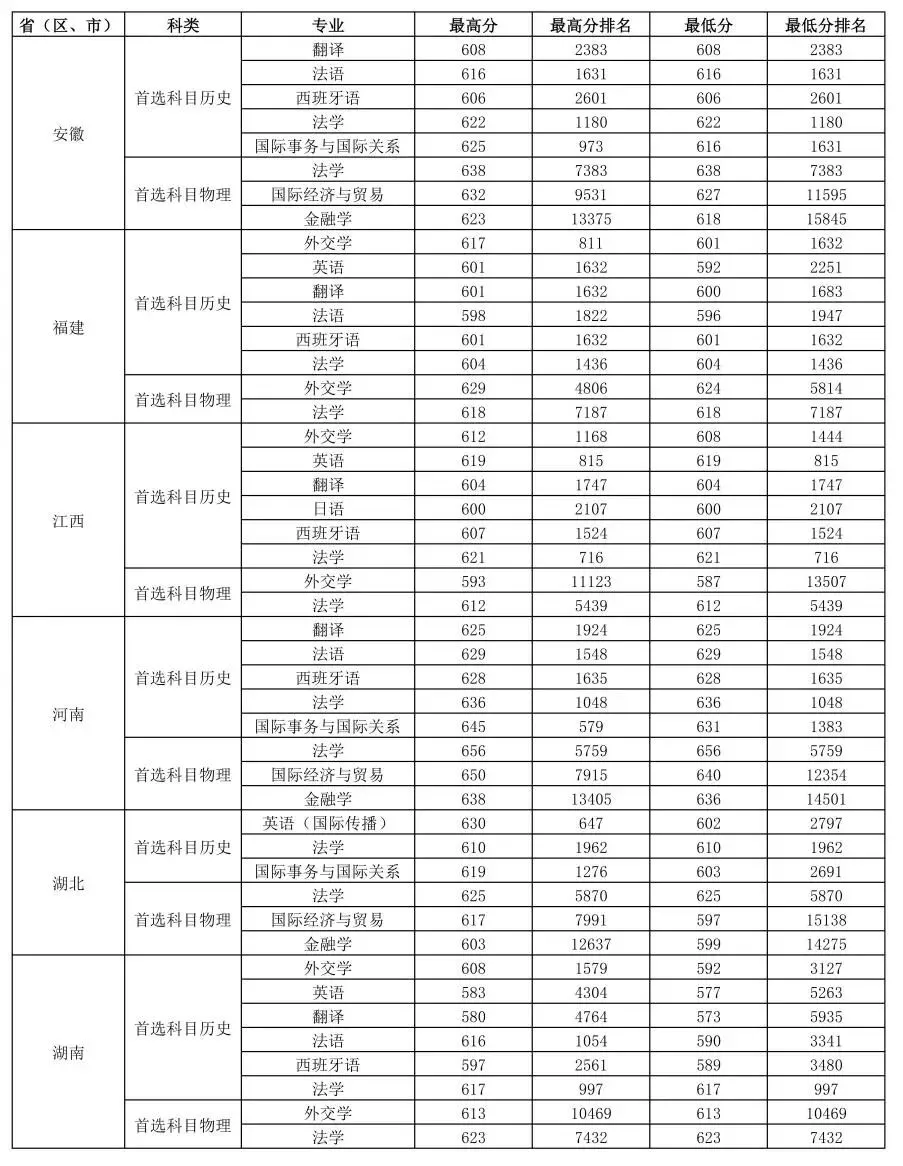 >【外交学院】2023—2025高考专业录取分数线及位次
