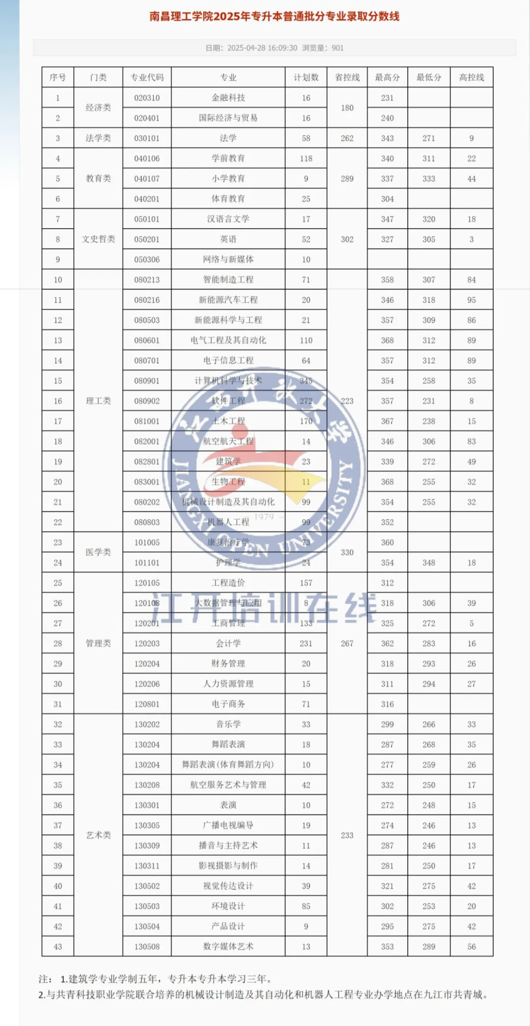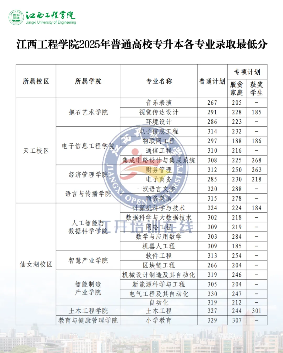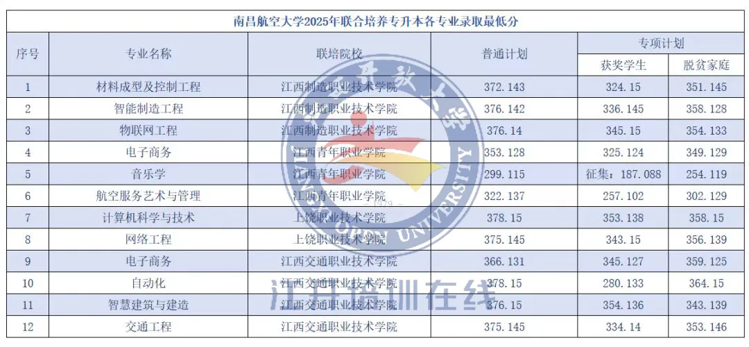 2025年江西专升本录取分数线正在陆续公布,目前已有15所院校公布了相关数据,为方便同学们查阅,已将所有已公布的院校最低录取分数线整理如下。