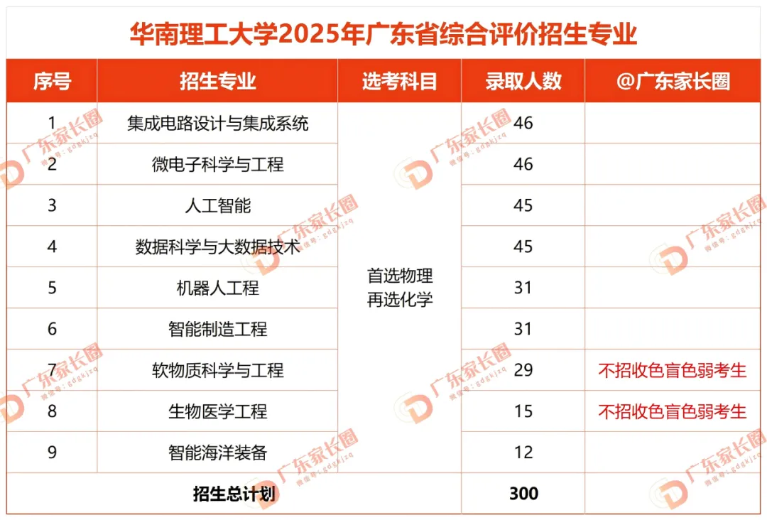 广东家长圈汇总整理了华南理工大学2025强基计划在广东省的招生专业、选科要求、招生计划等数据,方便大家更加清晰直观的看到各专业情况: