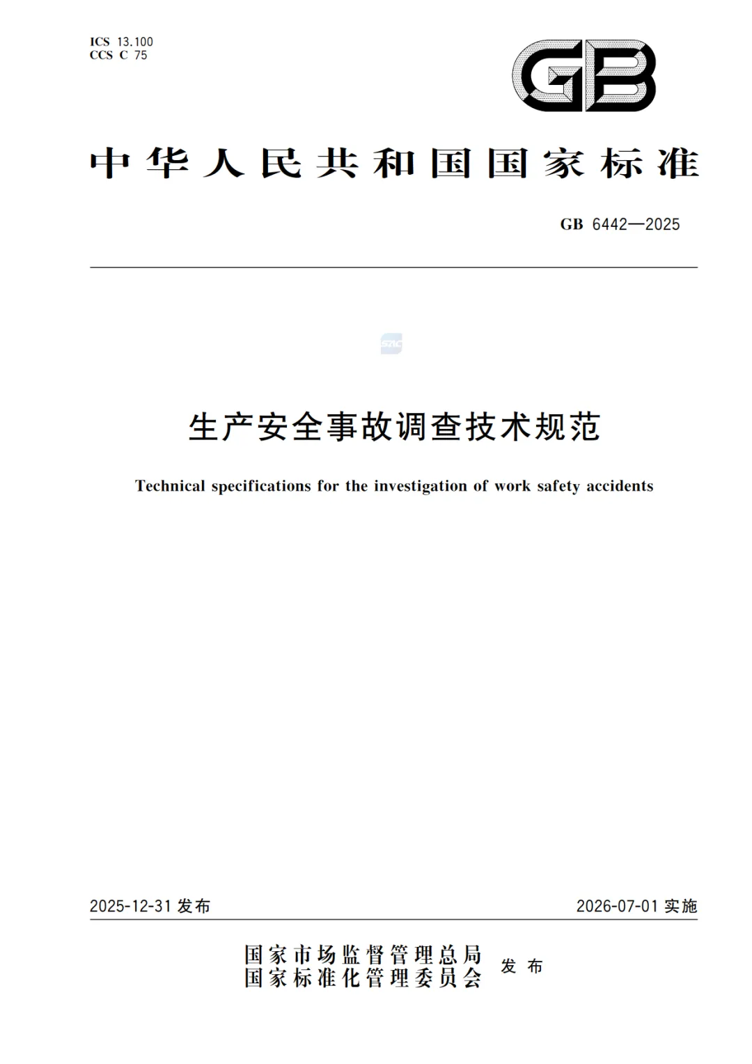 1.《生产安全事故调查技术规范》(GB 6442—2025)