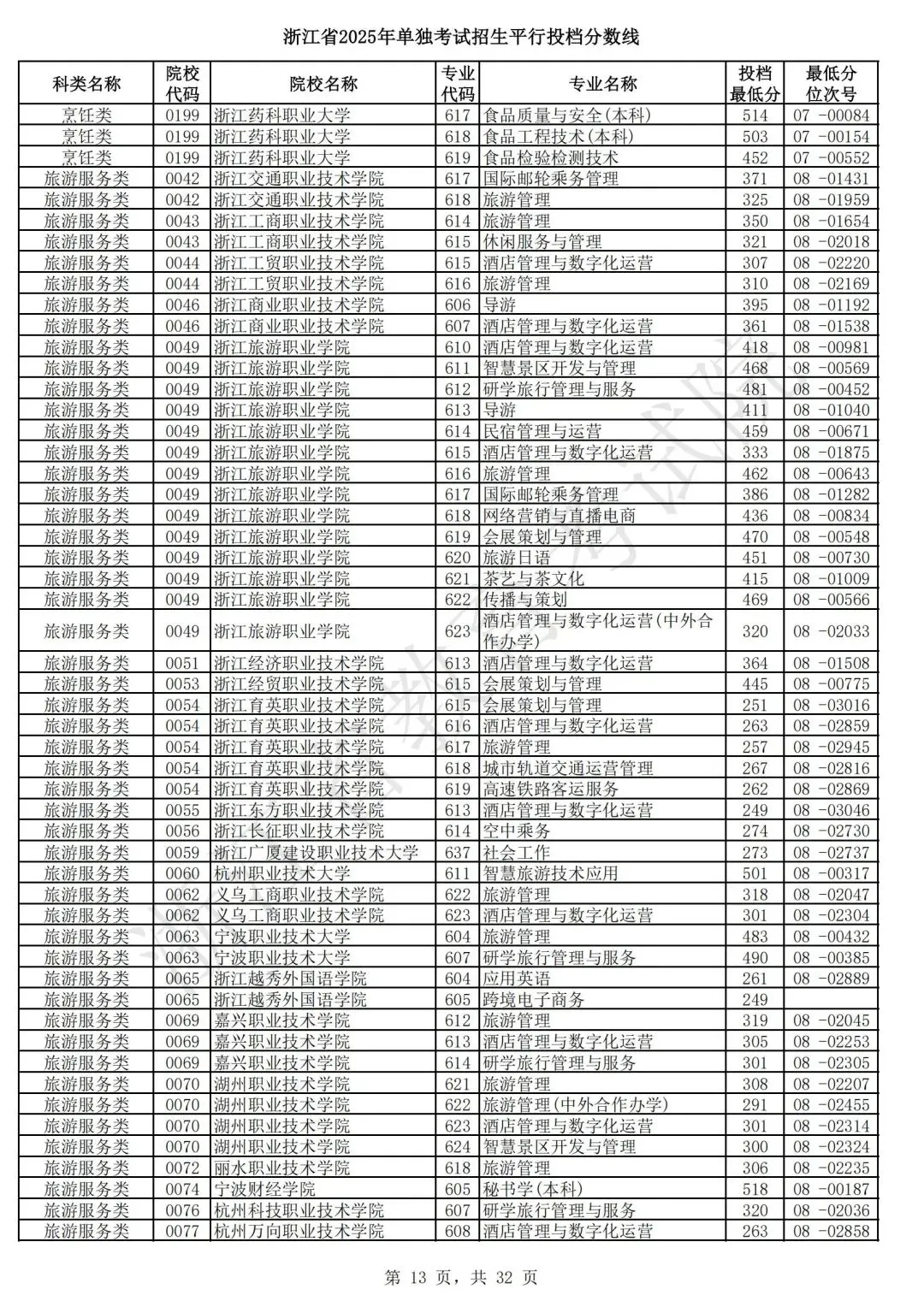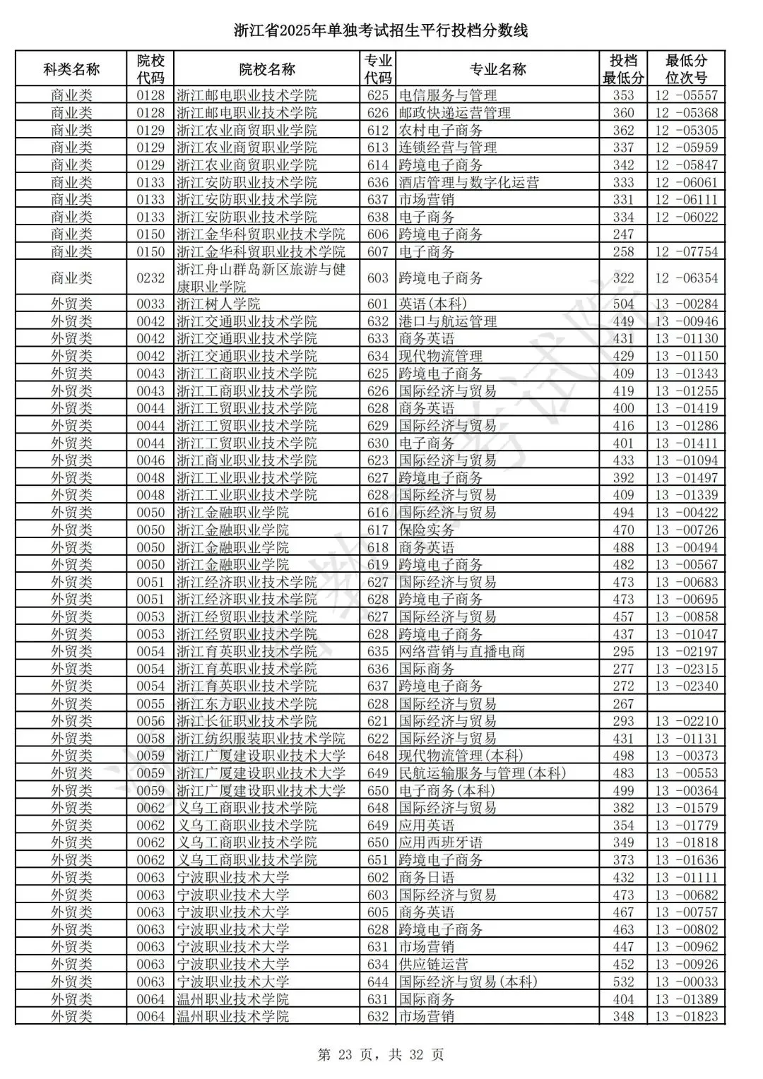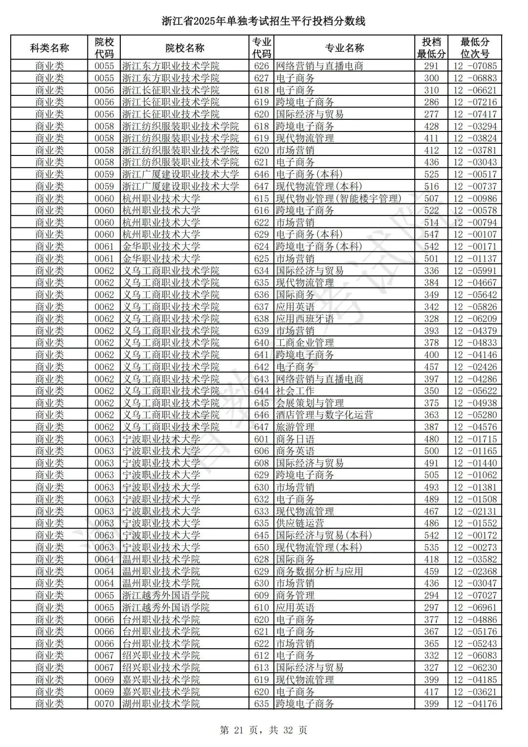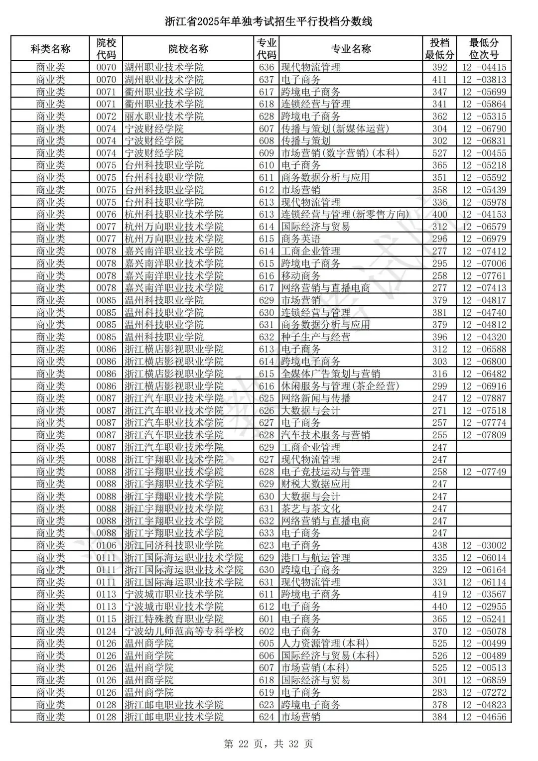 浙江省2025年单独考试招生平行志愿投档,各类别专业投档分数线和位次号出炉。考生可对照自己所填报的志愿,预估目前可能投档的高校和专业。本次投档后,预计考生可于7月7日晚通过浙江省教育考试院网站(www.zjzs.net)或“浙江考试”微信公众号查询相关录取情况。