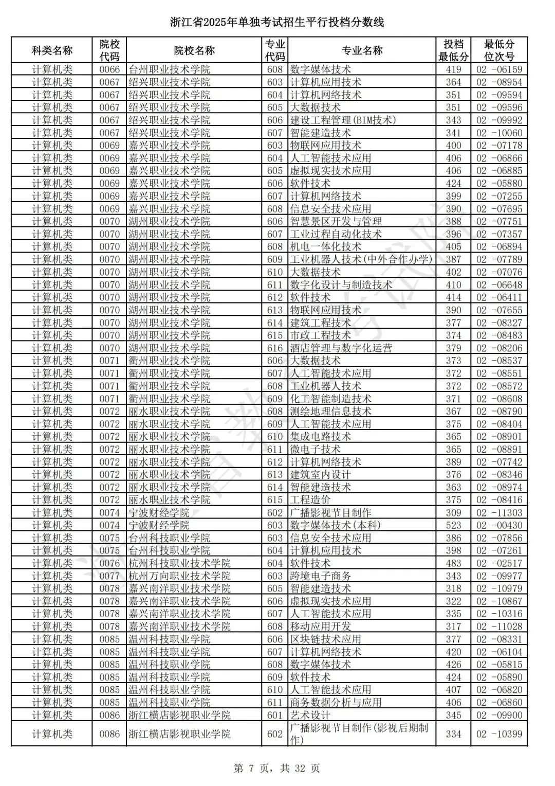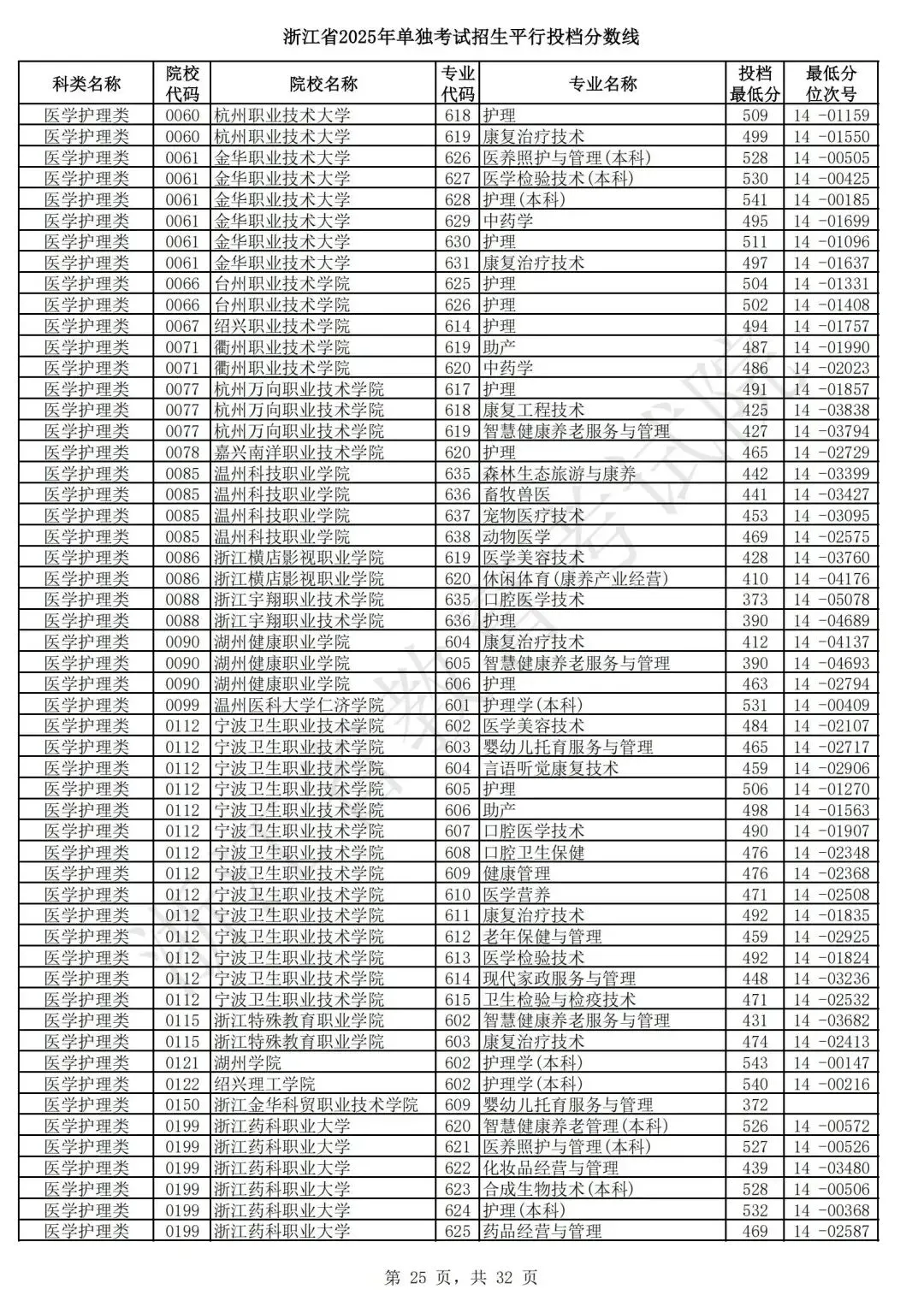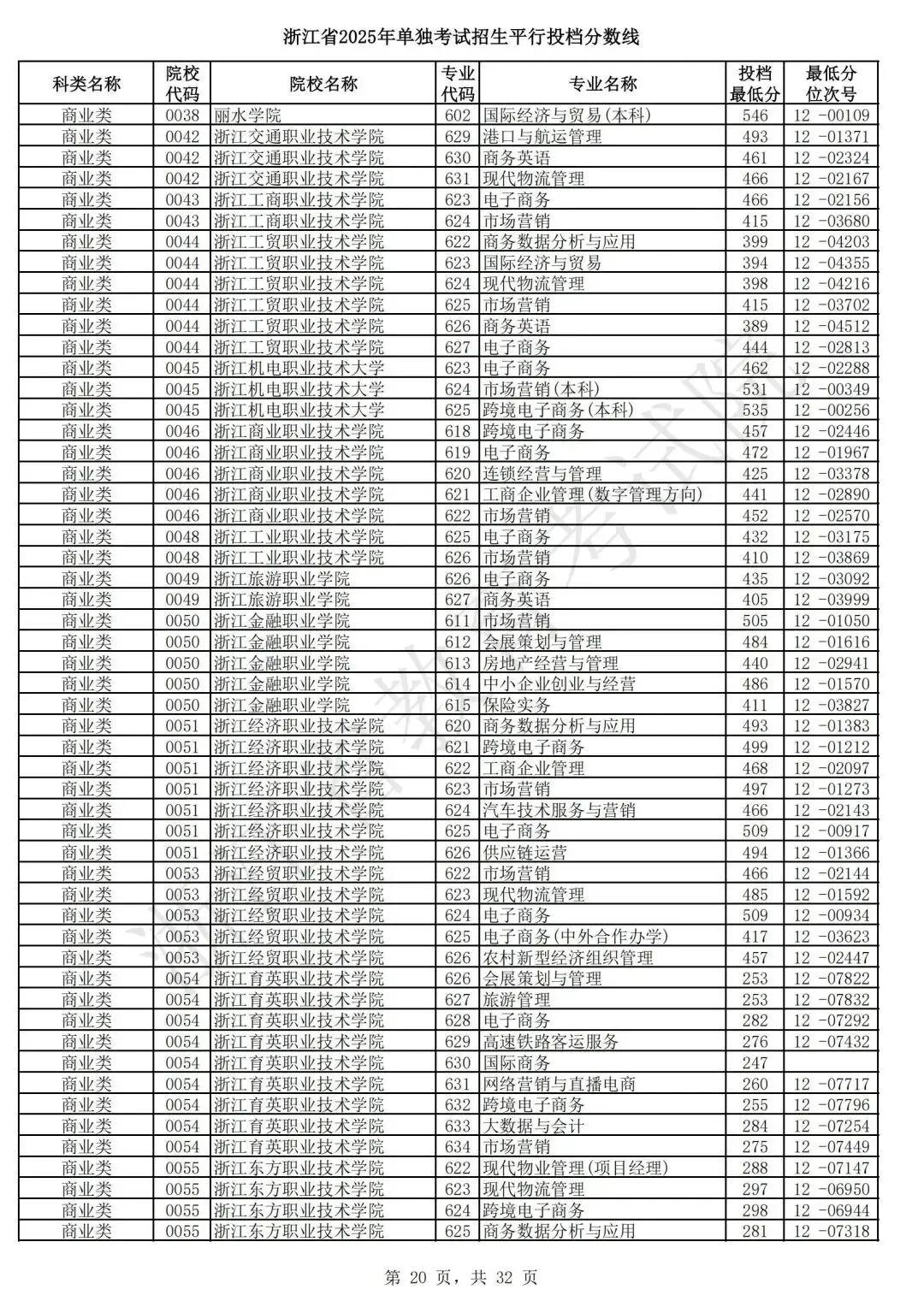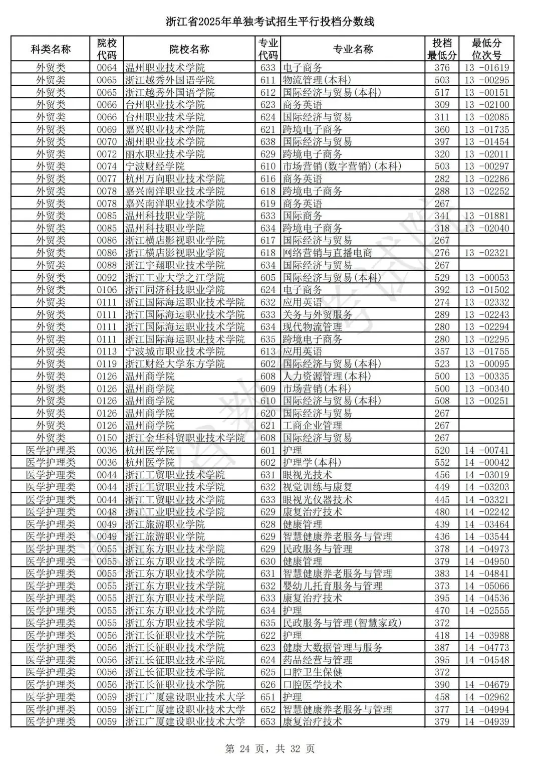 浙江省2025年单独考试招生平行志愿投档,各类别专业投档分数线和位次号出炉。考生可对照自己所填报的志愿,预估目前可能投档的高校和专业。本次投档后,预计考生可于7月7日晚通过浙江省教育考试院网站(www.zjzs.net)或“浙江考试”微信公众号查询相关录取情况。