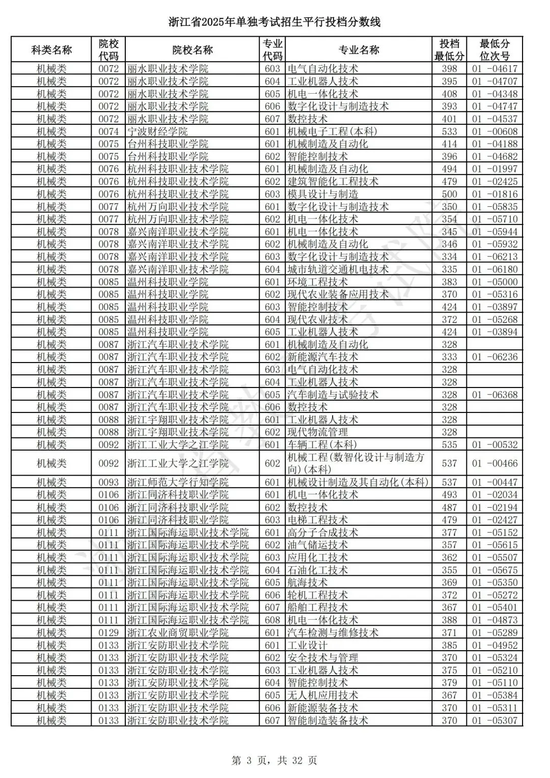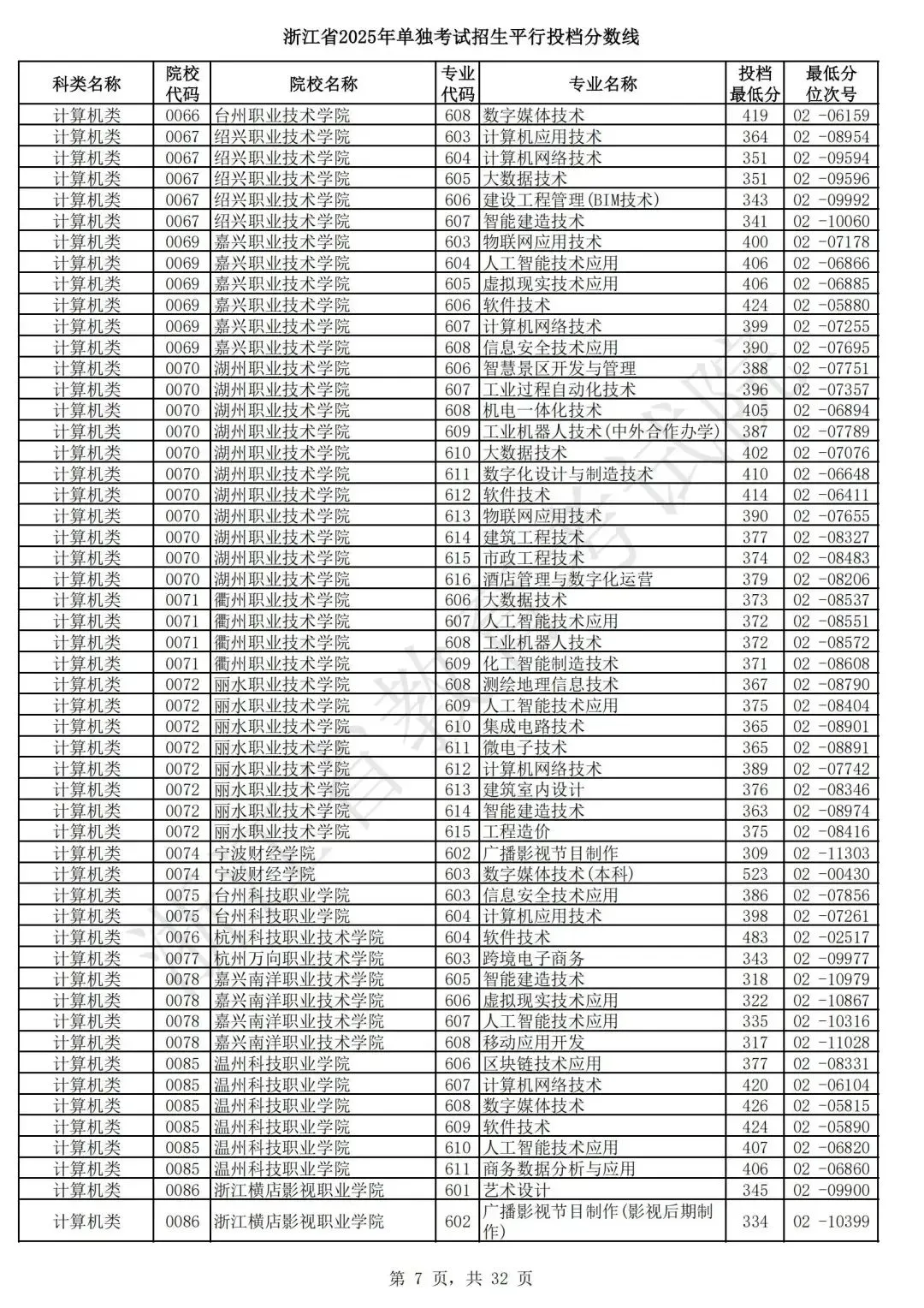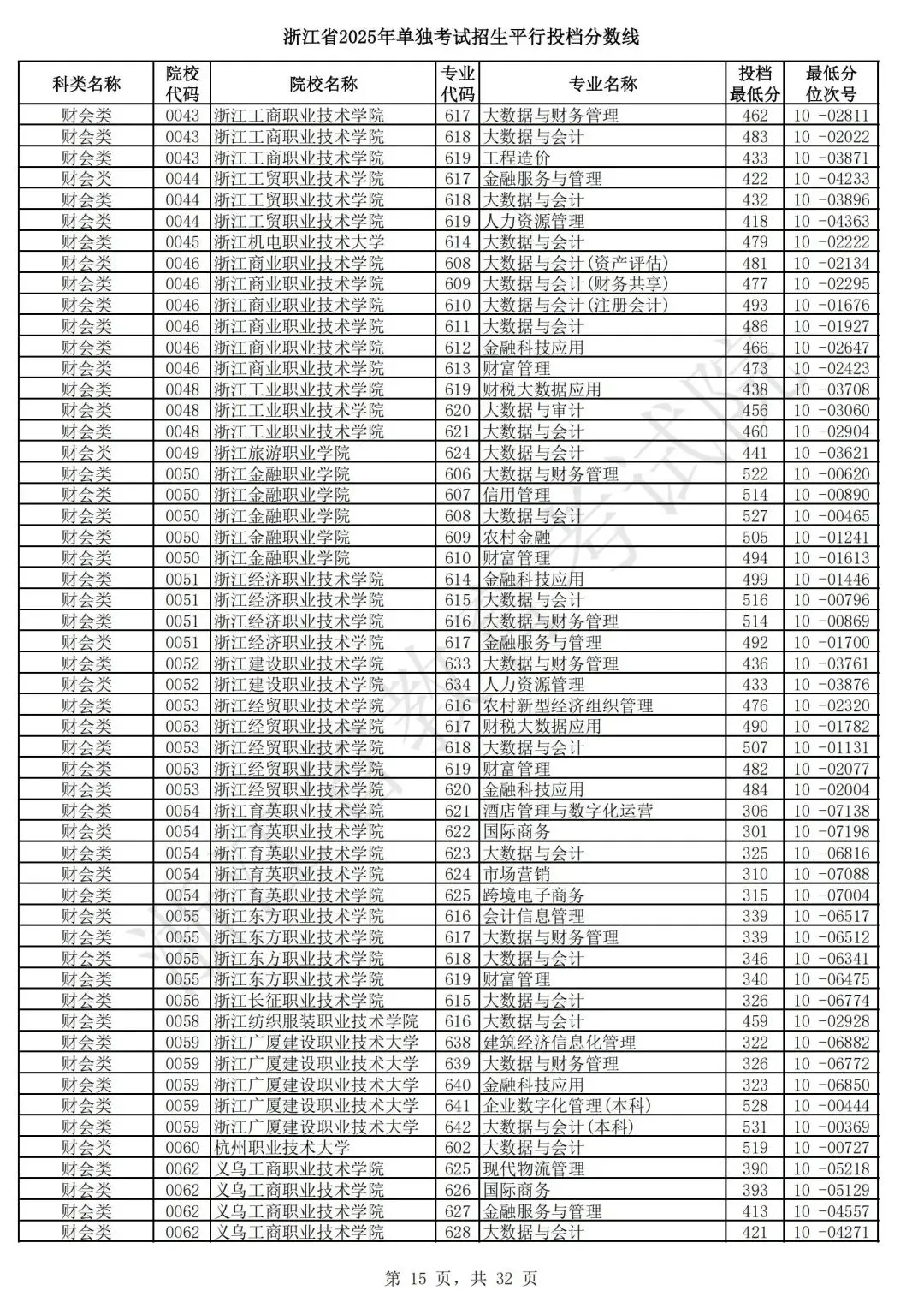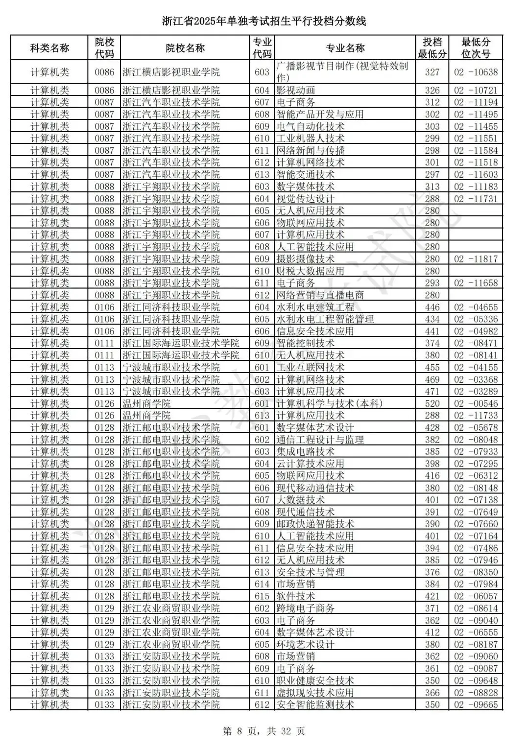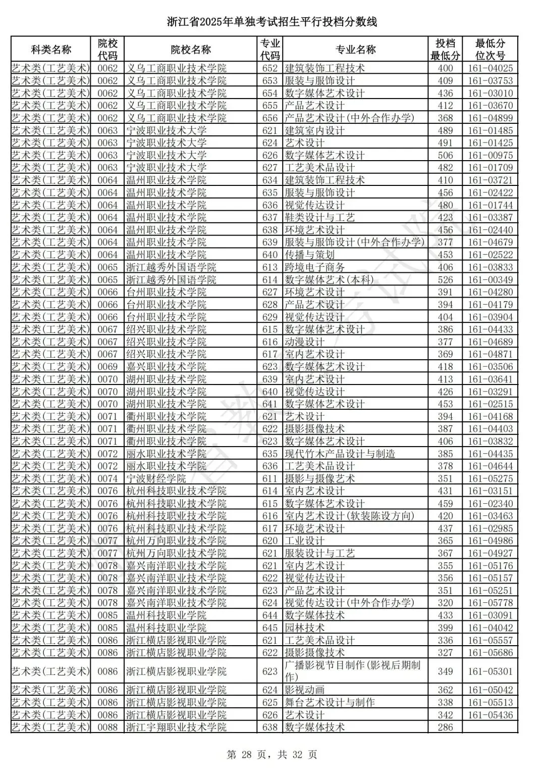 浙江省2025年单独考试招生平行志愿投档,各类别专业投档分数线和位次号出炉。考生可对照自己所填报的志愿,预估目前可能投档的高校和专业。本次投档后,预计考生可于7月7日晚通过浙江省教育考试院网站(www.zjzs.net)或“浙江考试”微信公众号查询相关录取情况。