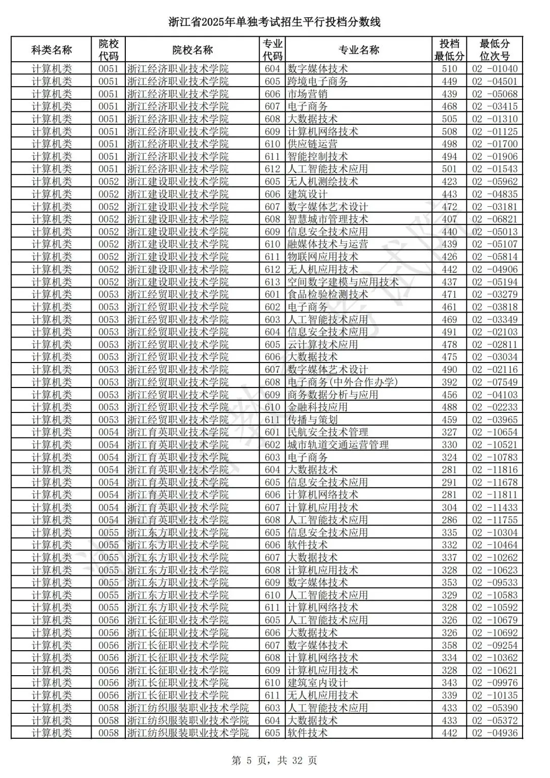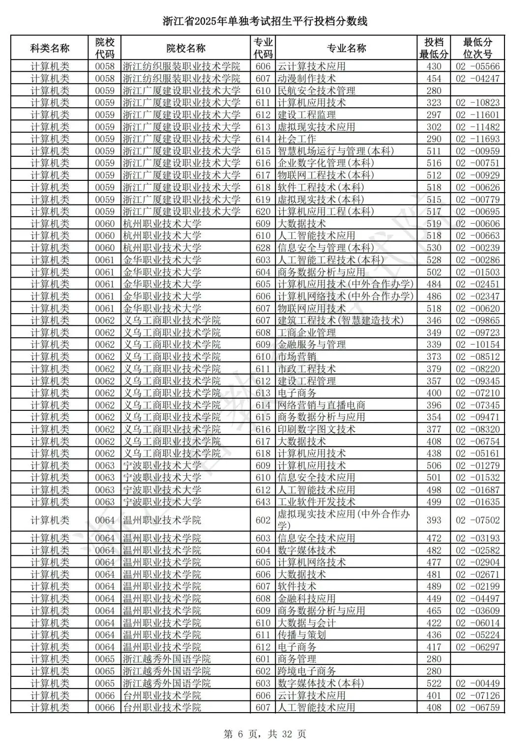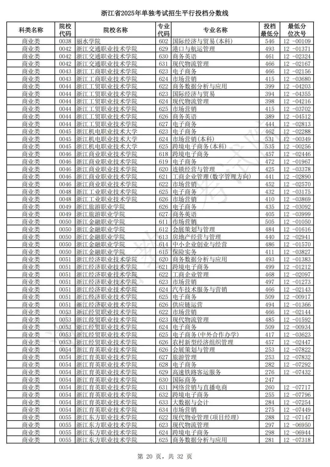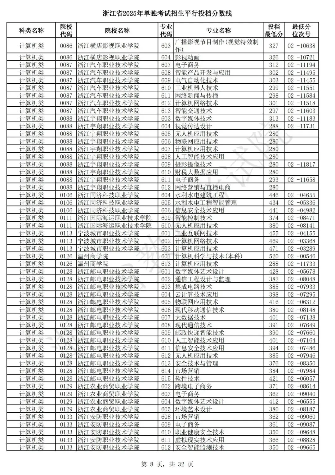 浙江省2025年单独考试招生平行志愿投档,各类别专业投档分数线和位次号出炉。考生可对照自己所填报的志愿,预估目前可能投档的高校和专业。本次投档后,预计考生可于7月7日晚通过浙江省教育考试院网站(www.zjzs.net)或“浙江考试”微信公众号查询相关录取情况。