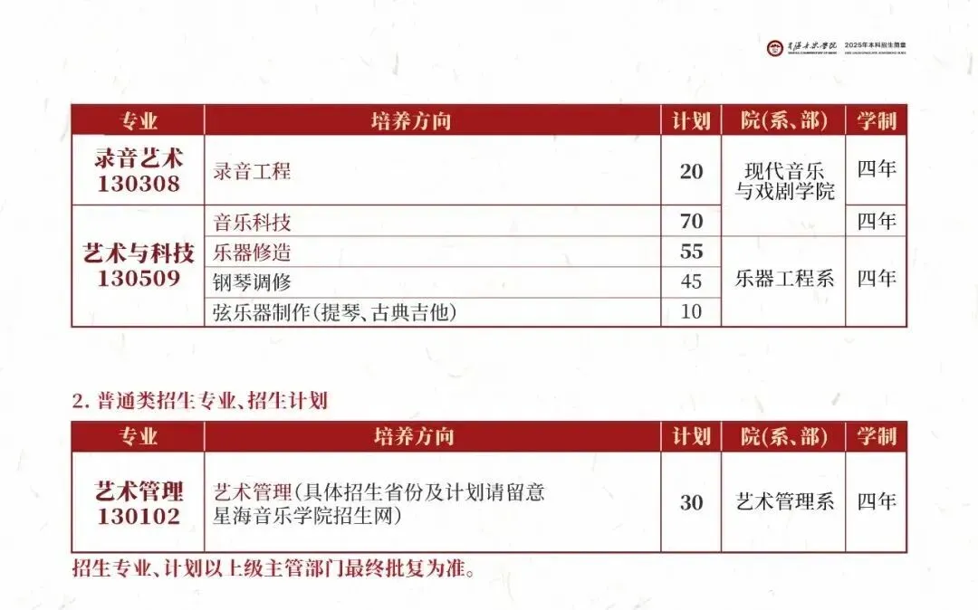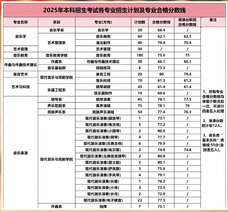 >星海音乐学院2025广东招生计划、各专业录取分数线!