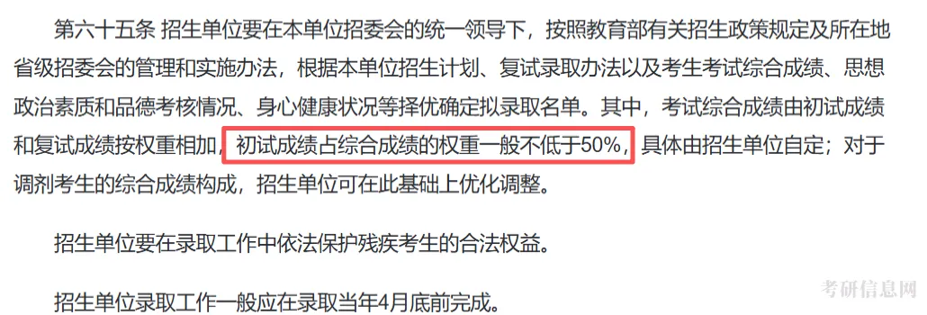 教育部在《2026年全国硕士研究生招生工作管理规定》中明确指出:初试成绩占综合成绩的权重一般不低于50%。