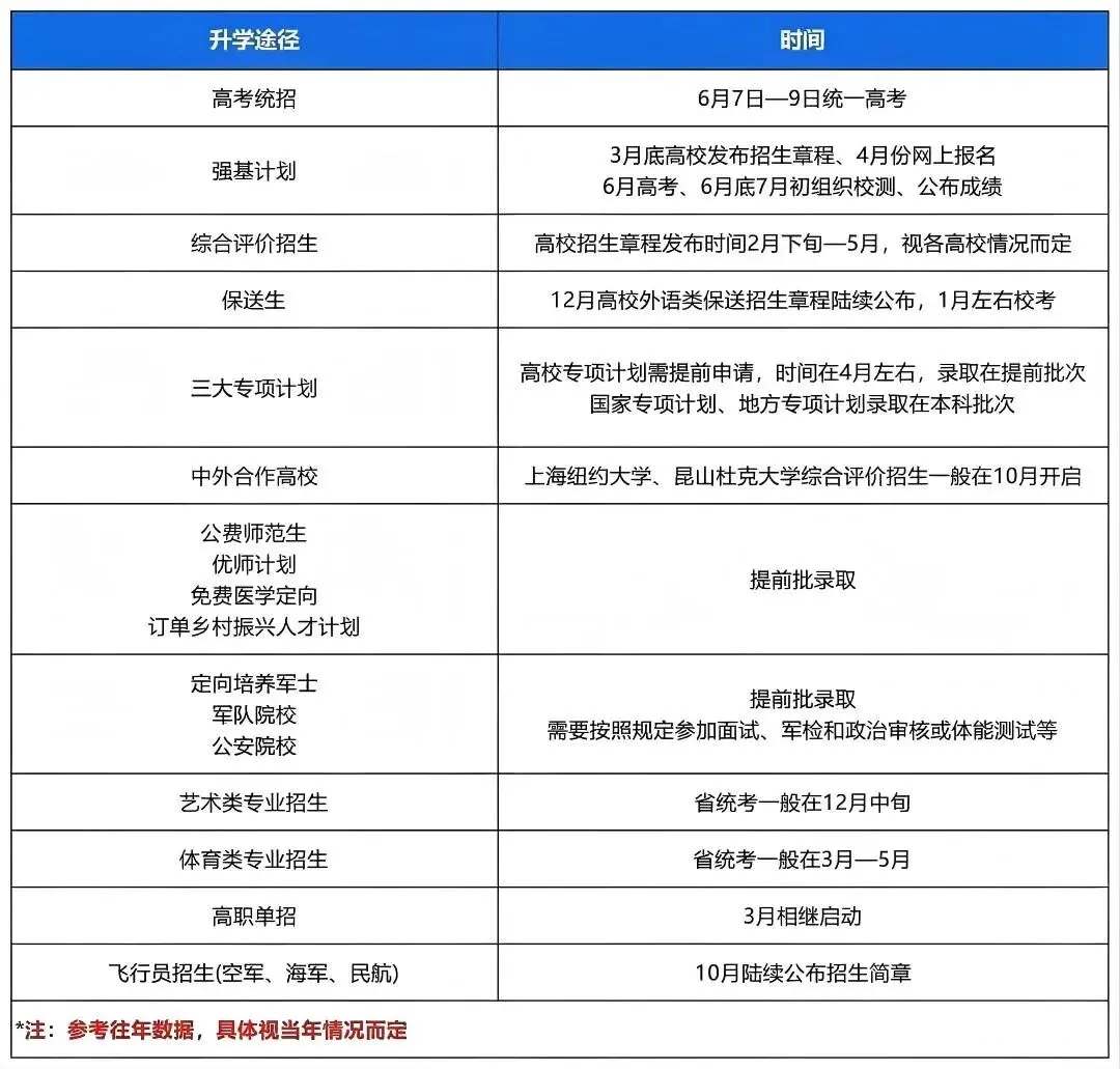 我国高校招生主要方式,10—11 月报名,需完成报名、体检、统考及志愿填报,无特殊要求(以高校章程为准)。除保送生、体育单招等特殊路径外,多数升学方式需以高考为基础。