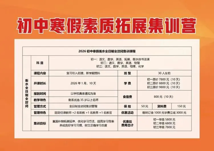 衡水金衡初高三寒假突击课程,助力升学冲刺