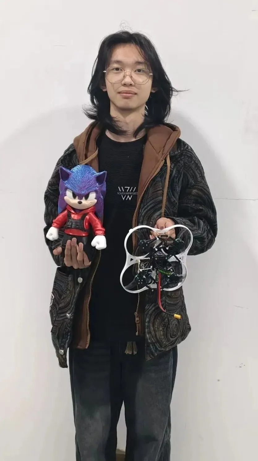 也有同学在考试当天因无人机故障未能成功起飞,但在后续的尝试中飞出了全场最佳成绩。虽因规则限制无缘奖品,仍值得肯定。望再接再厉,下学期以更稳定、可靠的表现再创佳绩!经过激烈角逐,来自管理学院的张博翔同学脱颖而出,凭借精湛的驾驶技术和沉稳的心态,成功征服所有圆环,荣登榜首,获得了一份极具象征意义的奖品——代表速度的3D打印手办刺猬索尼克。这份奖品不仅是对他个人能力的认可,更是对他勇于挑战、追求卓越精神的褒奖。