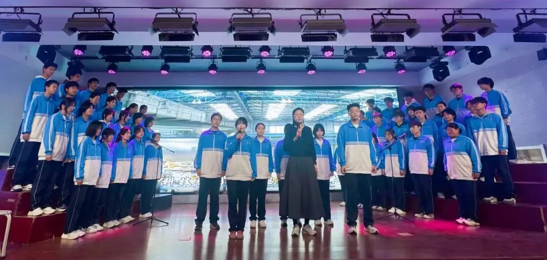 合唱中,有着最真挚的情感流露,最动人的青春模样。当最后一个音符落下,少年们稍作停顿,随即扬起脸庞,清朗有力的朗诵声缓缓响起。字句铿锵,饱含深情,诉说着对同窗情谊的珍惜,对学校培育的感恩,对祖国山河的热爱,也诉说着少年人奔赴未来的坚定与勇敢,为这场展演添上了浓墨重彩的一笔。