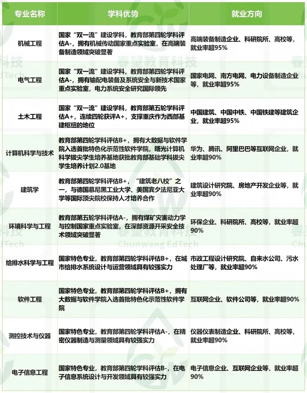 - 行业认可度高:重庆大学是西南地区工科实力最强的高校之一,毕业生在建筑、电力、机械等行业具有较高的认可度