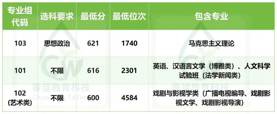 - o首选人文科学试验班(法学新闻类),次选汉语言文学(博雅类)、英语,依托学校综合性大学优势,就业方向涵盖教育、法律、新闻、翻译等领域