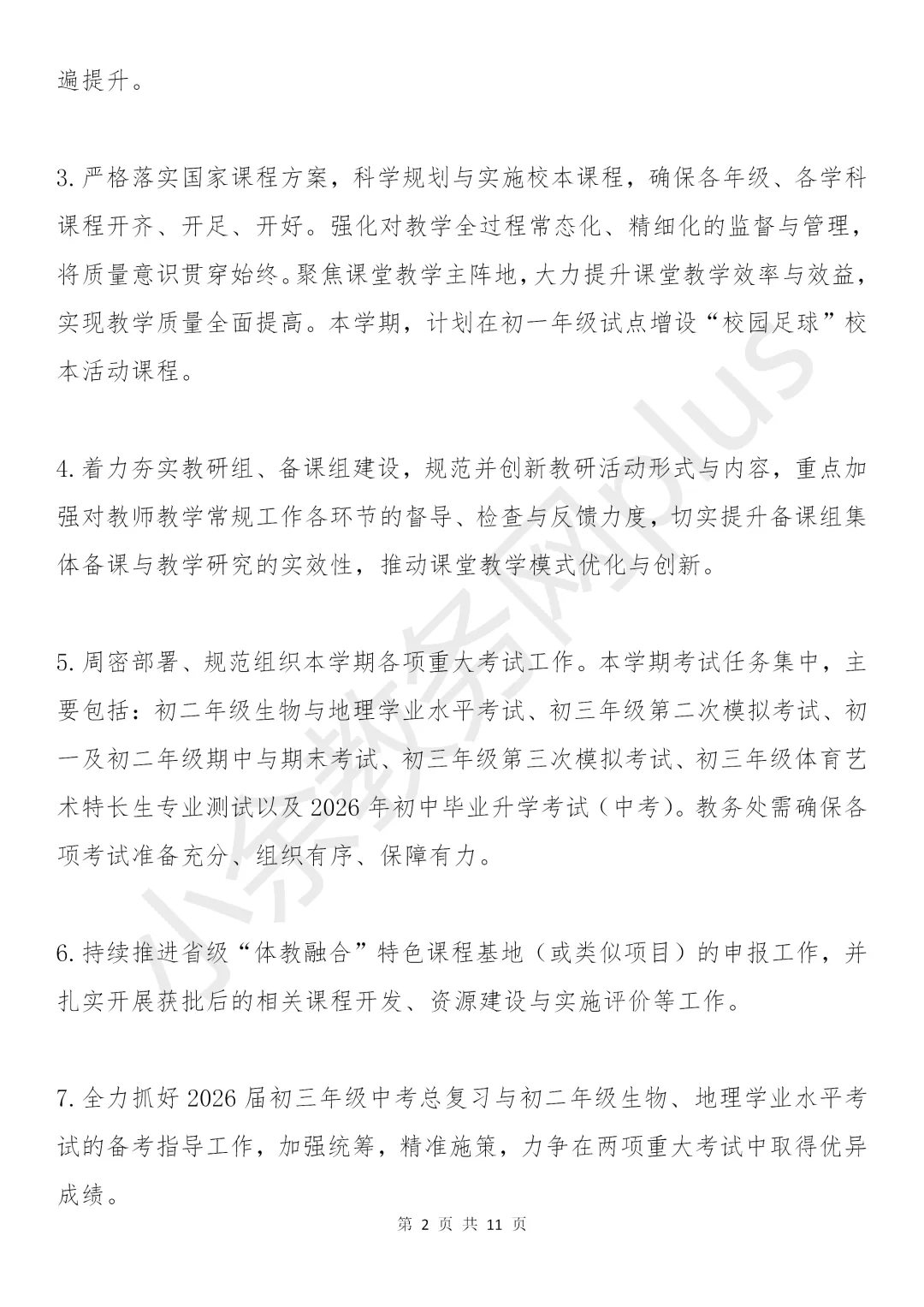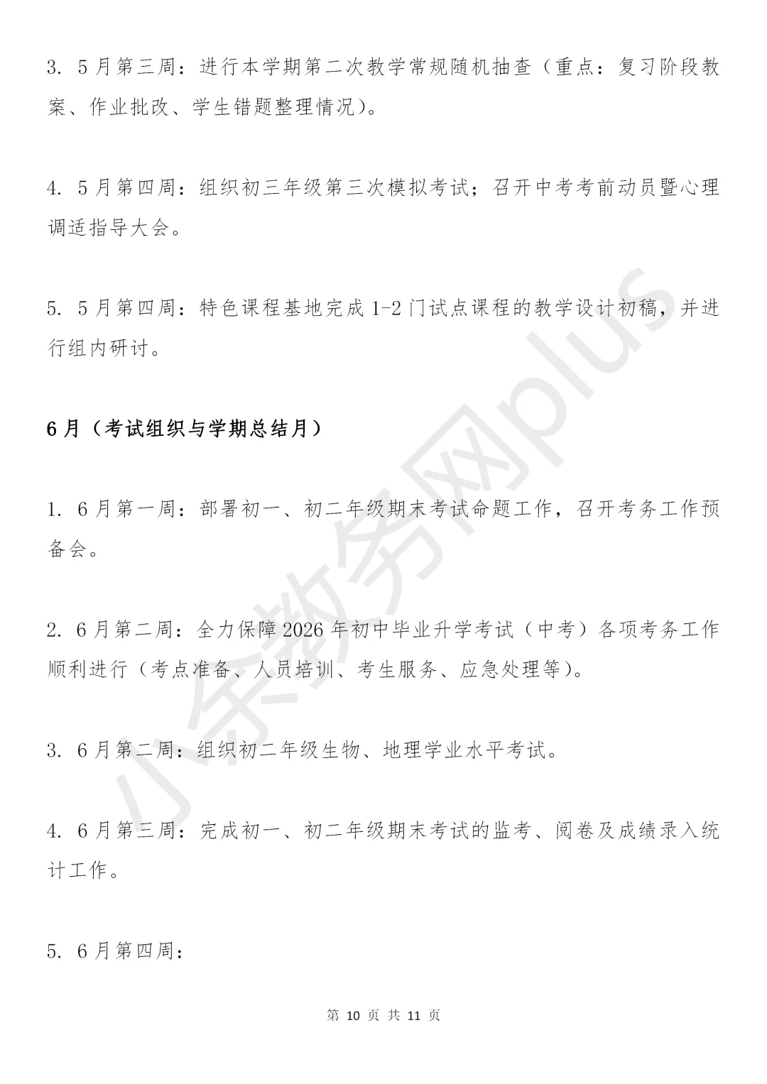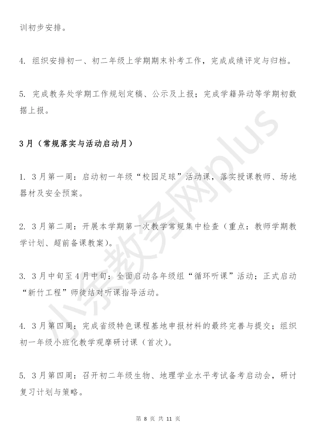 初级中学2025-2026学年春季学期教务处工作计划(附工作行事历)。