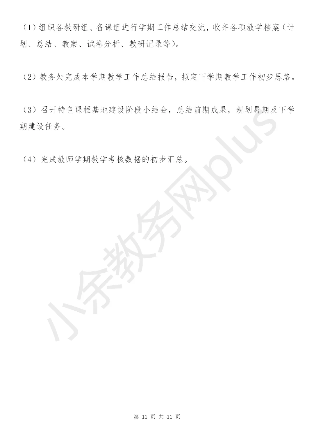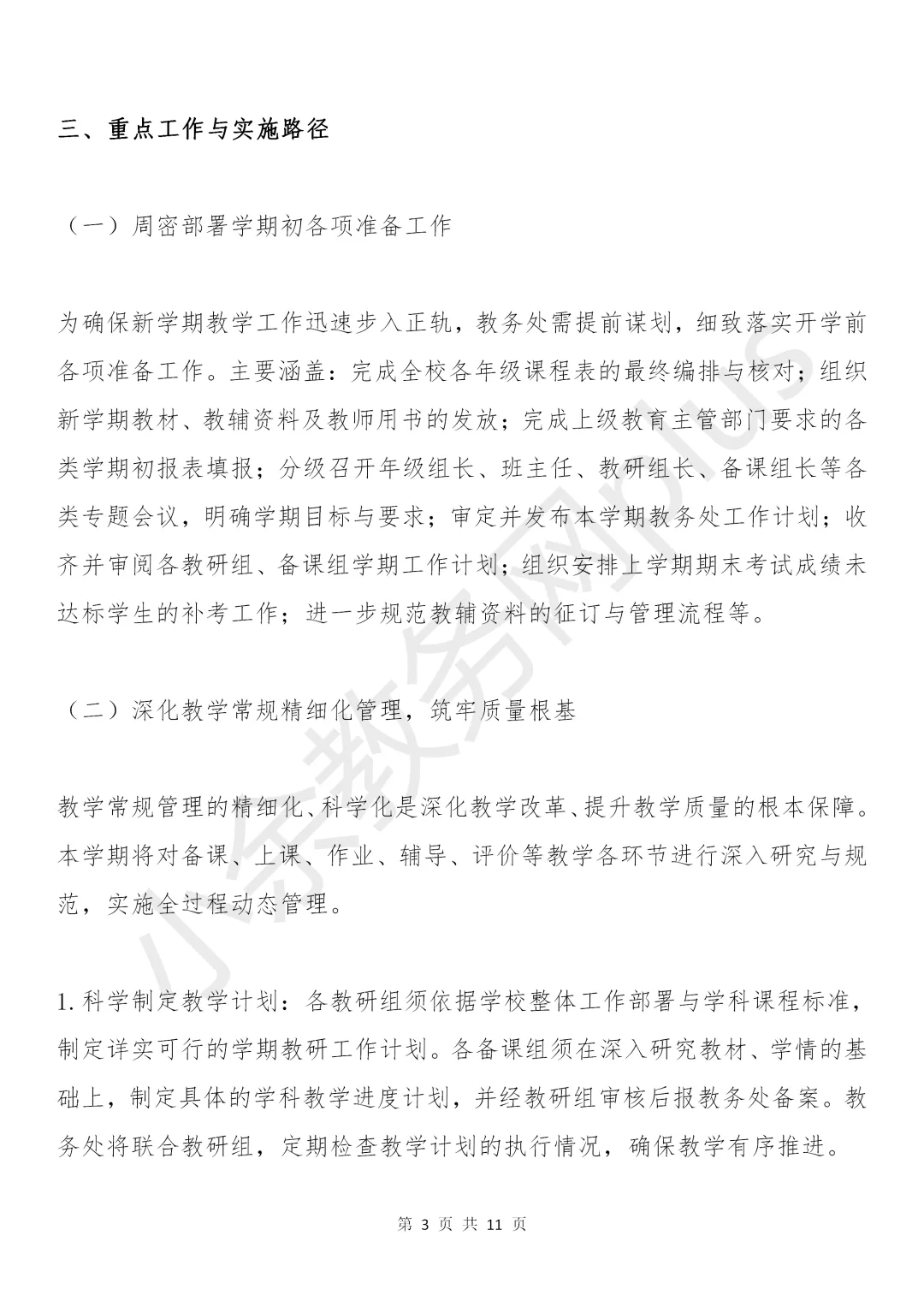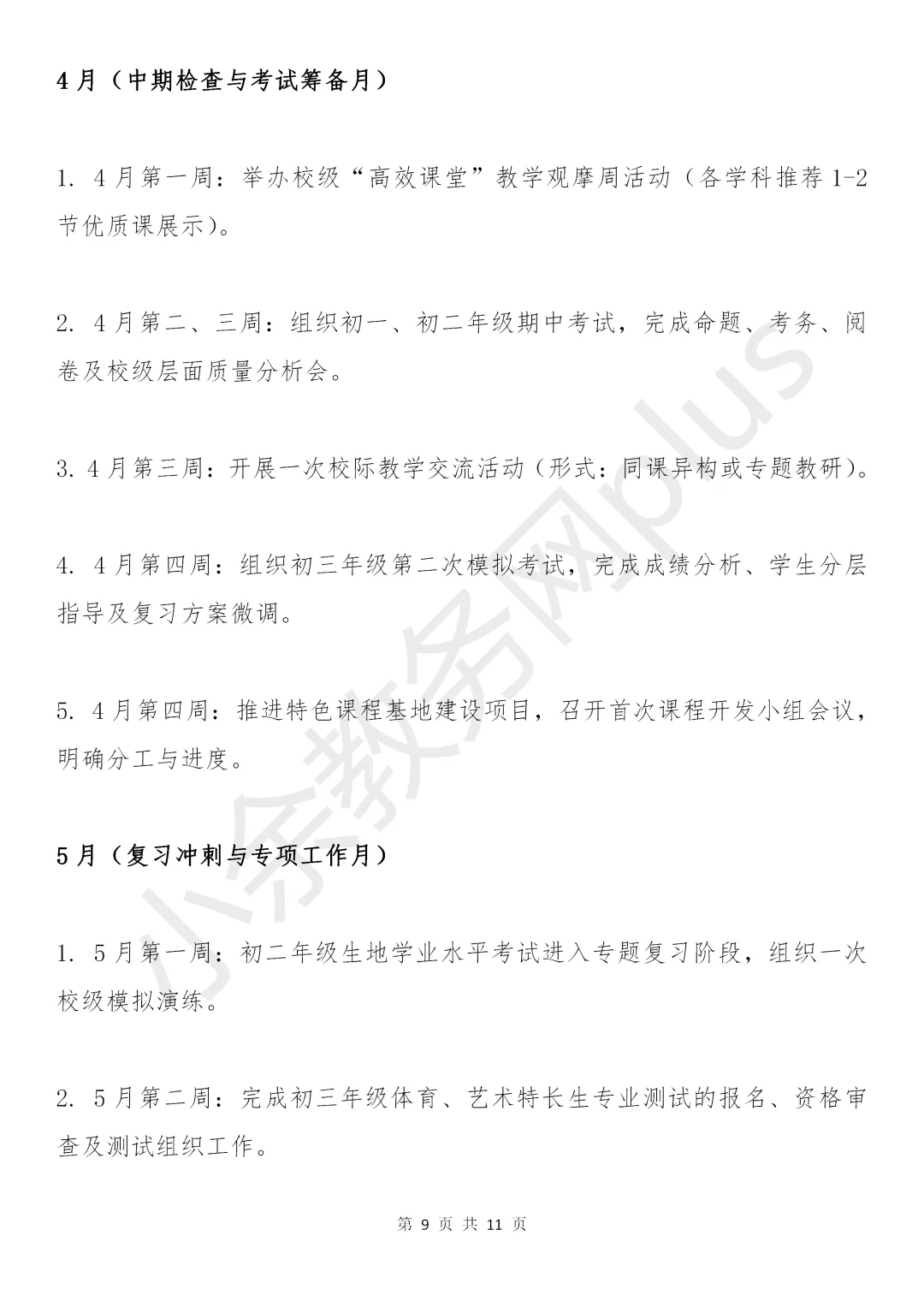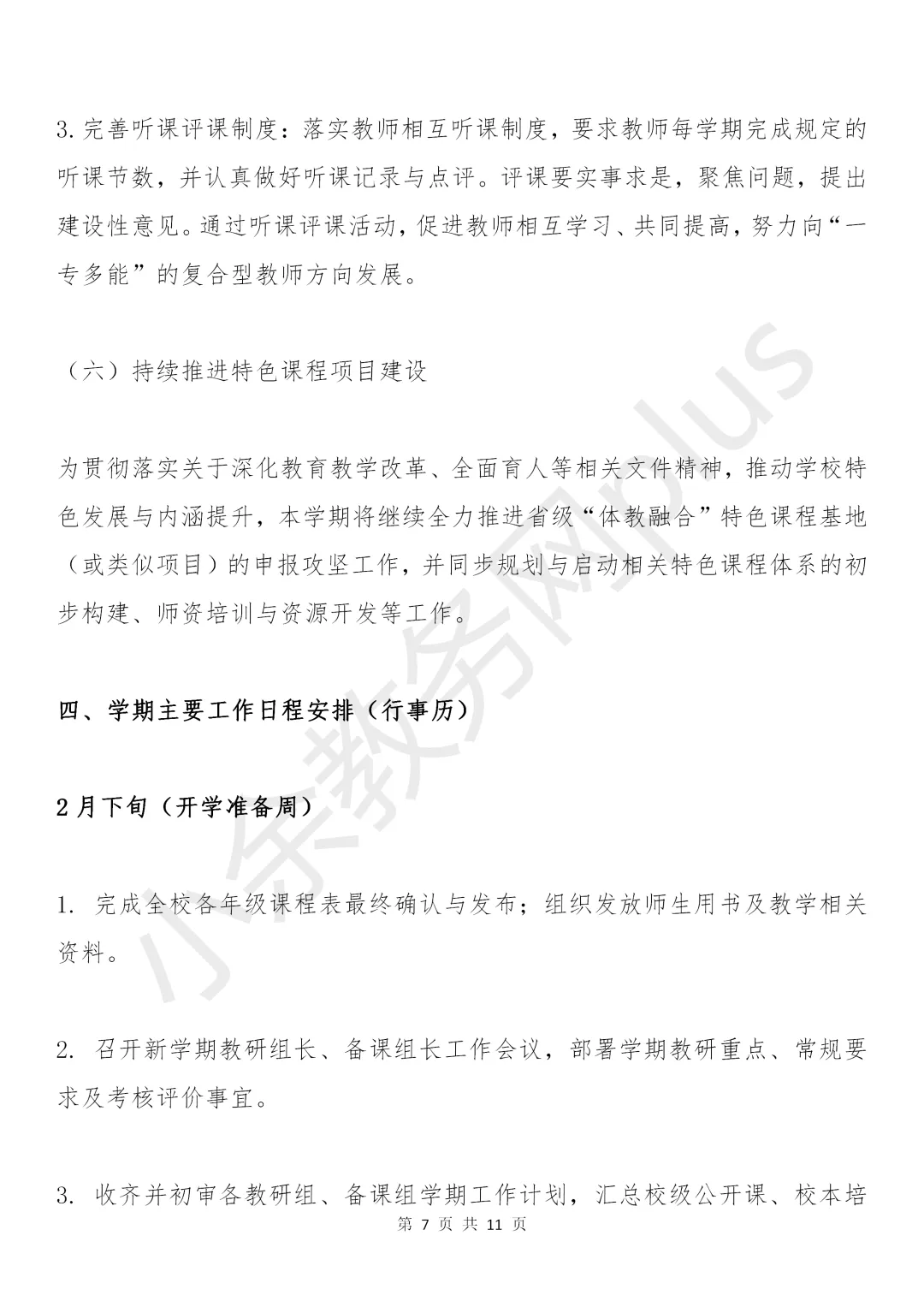初级中学2025-2026学年春季学期教务处工作计划(附工作行事历)。