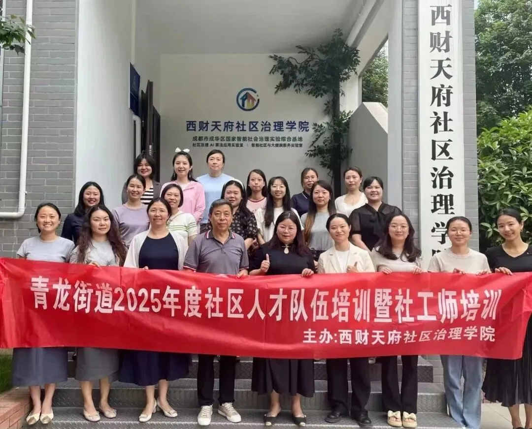 照片为西南财经大学天府学院联合成都市青龙街道进行社区人才培训的留念照片,彭老师为主讲老师。(照片第一排正中间是彭英美博士)。