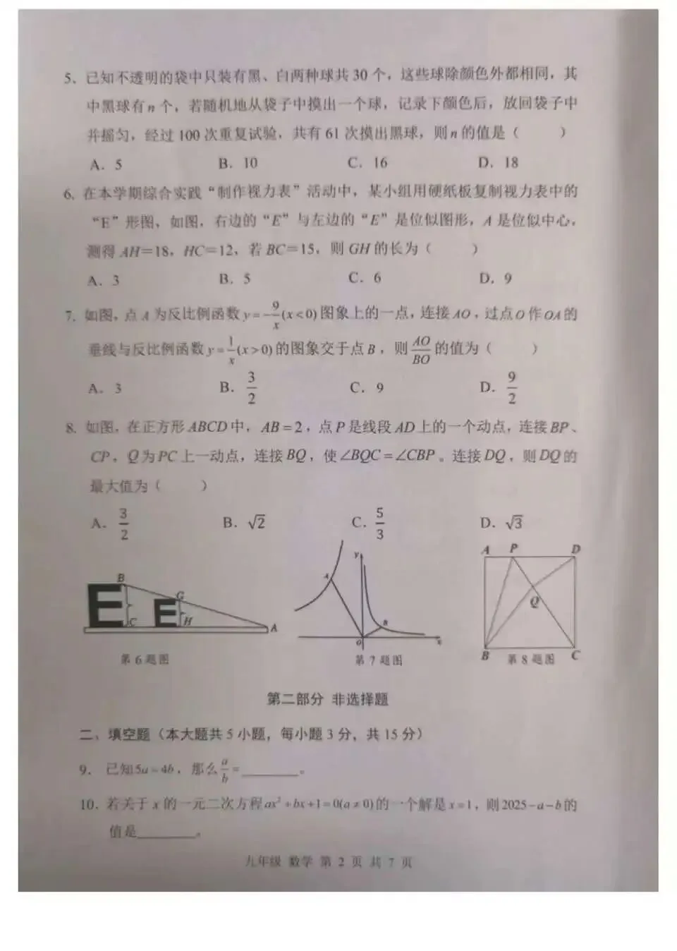 坪山这份试卷用反比例函数代替二次函数(初三上学期,二次函数还没学完),但命题思路完全一致:多层递进的问题,考查知识迁移能力和类比推理能力。