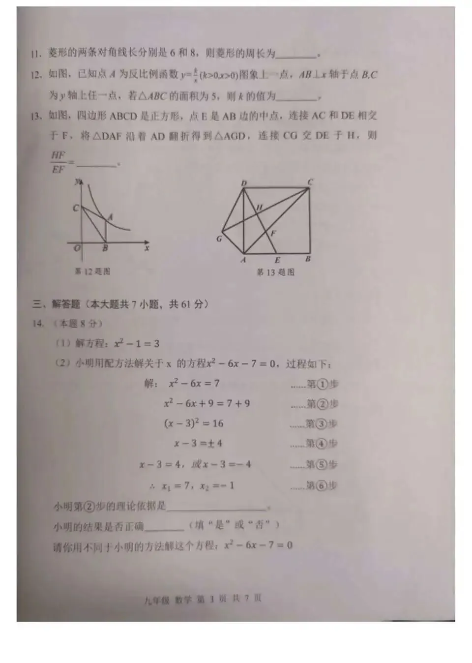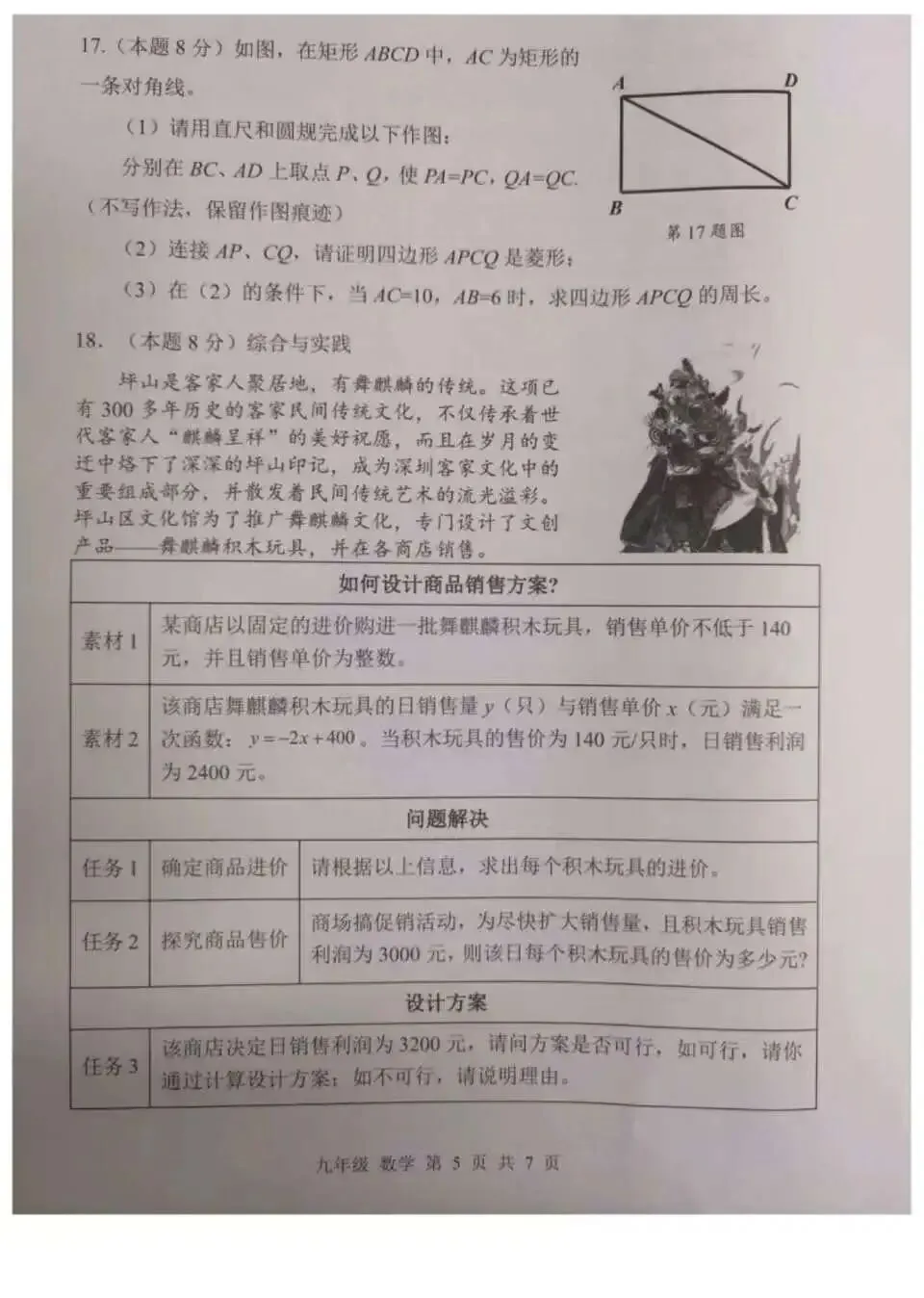 坪山这份期末试卷,结构、题型都在向中考改革方向靠拢。第19题(9分代数压轴)和第20题(12分几何压轴)都不简单,这意味着以后中考很可能是”双压轴”——代数和几何都要难。