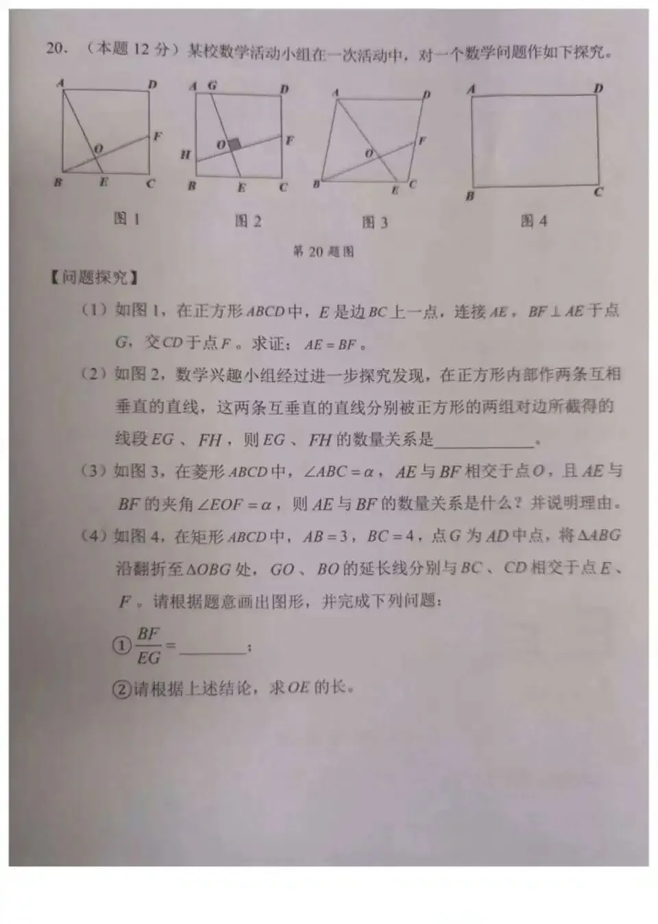 ·第(4)问:换成矩形——AB=3,BC=4,点G为AD中点,将△ABG翻折至△OBG,求BF/EG和OE的长。