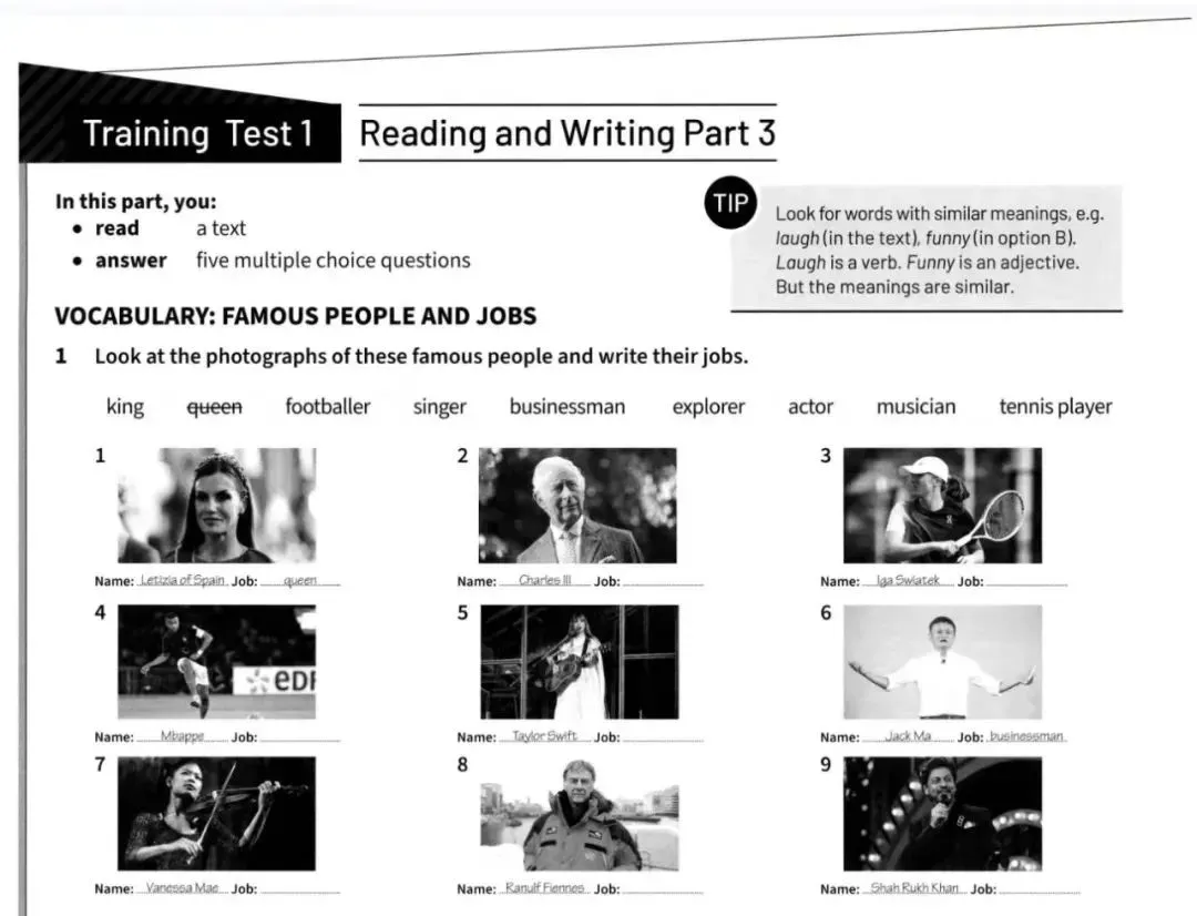 2024版Trainer 2中添加了更多的时事考察,在真题书的练习册阅读中,经常能看到如查尔斯国王,歌坛女王泰勒,足球新星姆巴佩等社会名人。
