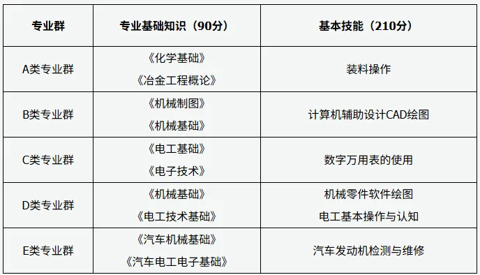 根据省教育厅下发的《山西省中等职业学校毕业生对口升学考试加工制造类专业职业技能考试大纲(试行)》,本专业职业技能考试分专业基础知识考试和基本技能考试两部分,满分300分,其中:专业基础知识90分,基本技能210分,考试成绩结果体现为“合格”和“不合格”。考试内容如下:
