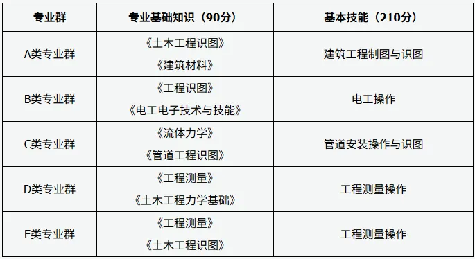根据省教育厅下发的《山西省中等职业学校毕业生对口升学考试土木水利类专业职业技能考试大纲(试行)》,本专业职业技能考试分专业基础知识考试和基本技能考试两部分,满分300分,其中:专业基础知识90分,基本技能210分,考试成绩结果体现为“合格”和“不合格”。考试内容如下: