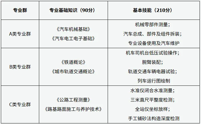 根据省教育厅下发的《山西省中等职业学校毕业生对口升学考试交通运输类专业职业技能考试大纲(试行)》,本专业职业技能考试分专业基础知识考试和基本技能考试两部分,满分300分,其中:专业基础知识90分,基本技能210分,考试成绩结果体现为“合格”和“不合格”。考试内容如下:
