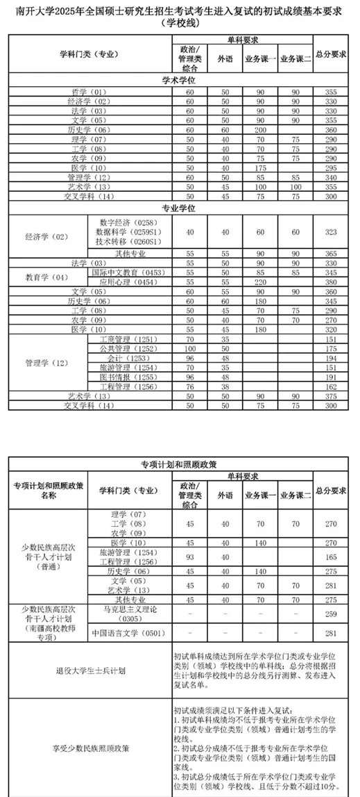 >考研复试线 | 南开大学25考研复试线!