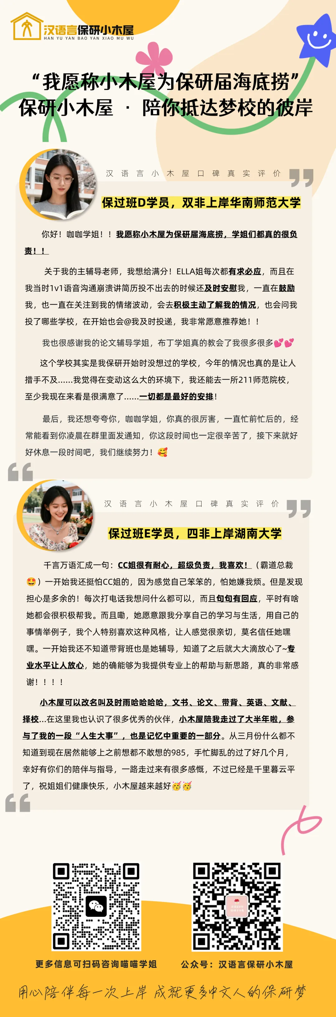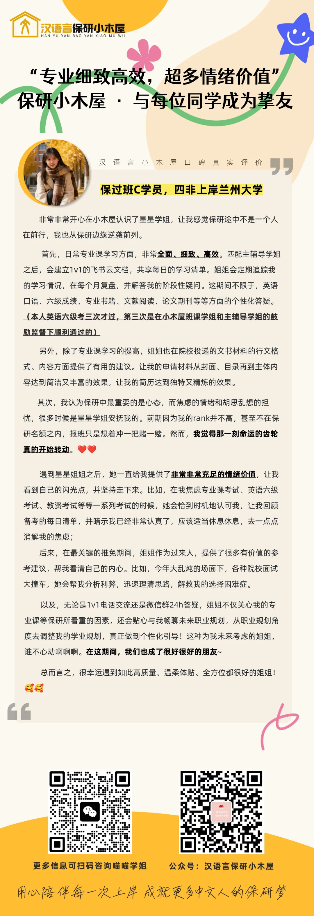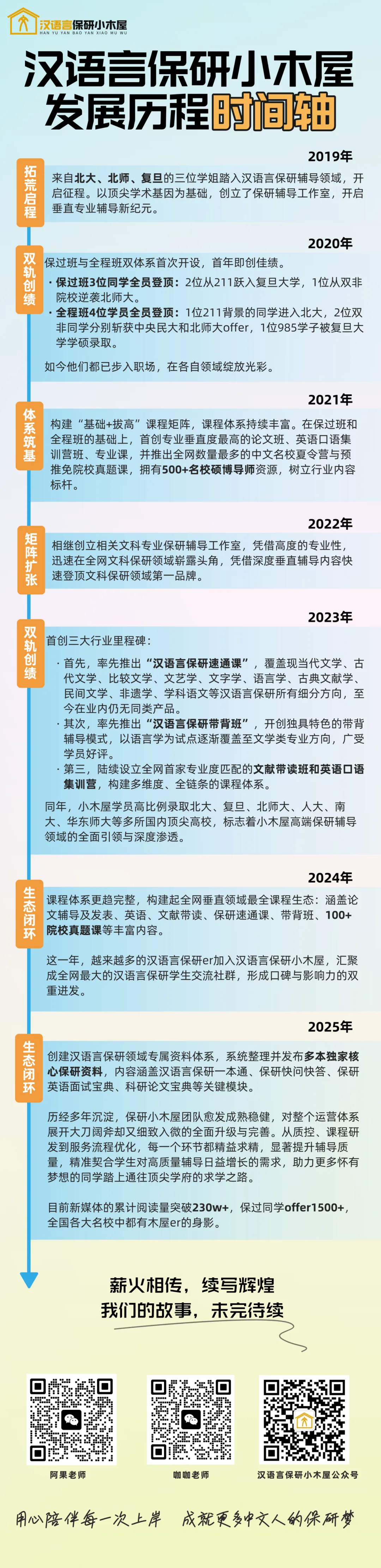 荣誉是对过去的肯定,更是对未来的期许。 「保研小木屋」将继续发挥领军品牌的力量,而「汉语言保研小木屋」将始终作为你最坚实的学术后盾。