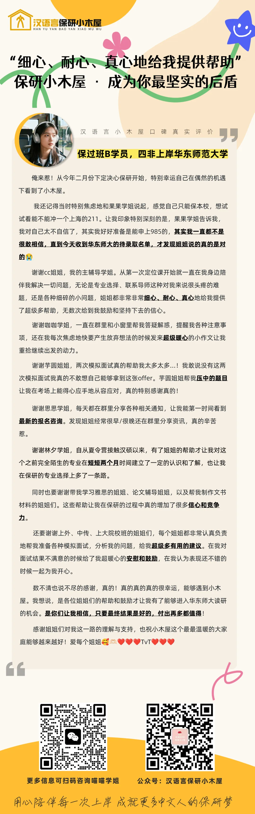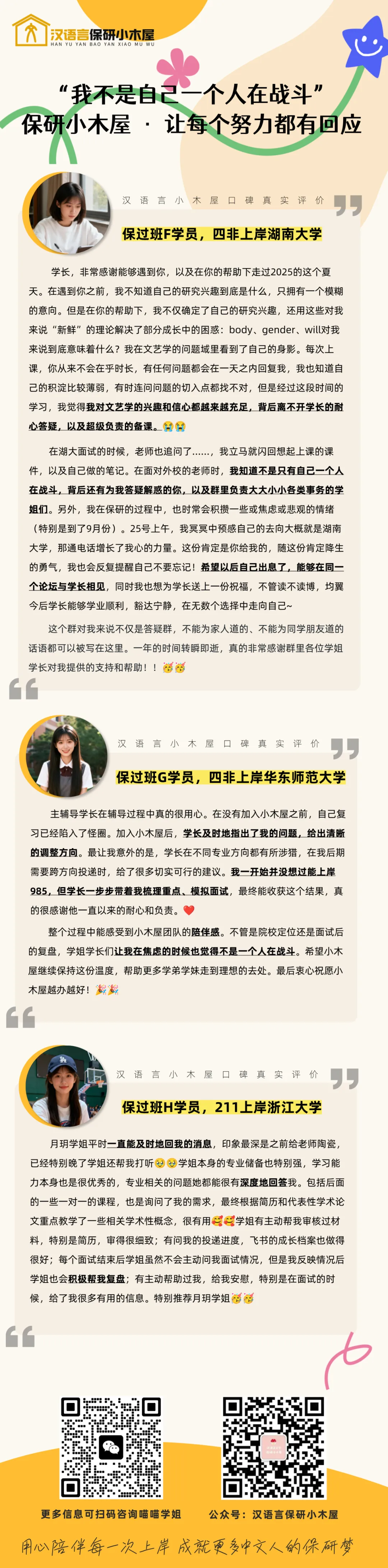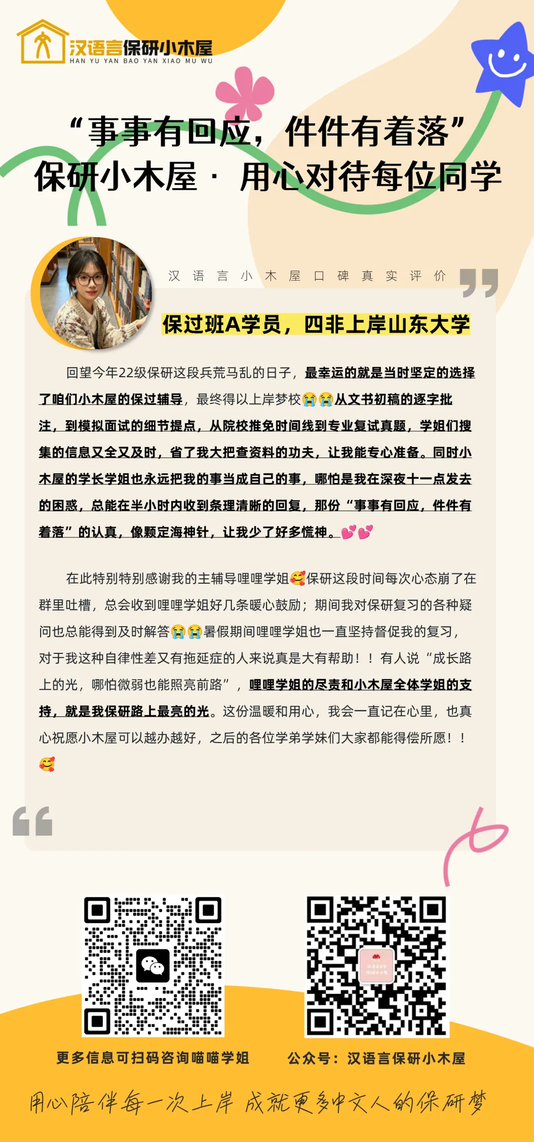 荣誉是对过去的肯定,更是对未来的期许。 「保研小木屋」将继续发挥领军品牌的力量,而「汉语言保研小木屋」将始终作为你最坚实的学术后盾。