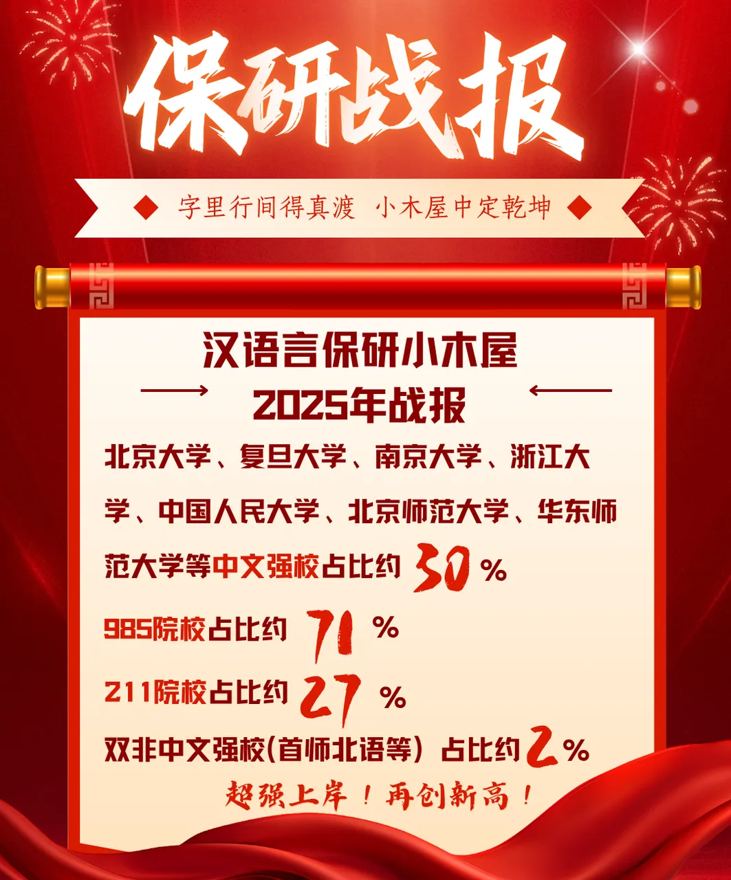 2025年上岸喜报:26届保研喜报|包揽全国985中文学硕半壁江山!各大高校均有入营拿offer,小木屋保过班同学战绩可查!