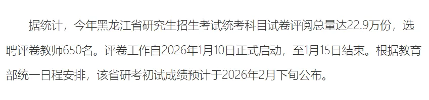 距离2026考研初试已经过去接近1个月了,目前各地阅卷工作也都已接近尾声,已经有学校发布了阅卷结束的通知!评卷工作自2026年1月10日正式启动,至1月15日结束。