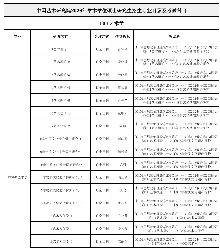 戏剧考研 | 2026年中国艺术研究院戏剧硕士招生简章、专业目录