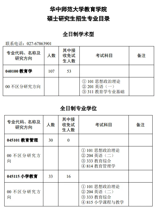 333/311教育学考研 | 华中师范大学2026年硕士招生简章、专业目录、复试方案