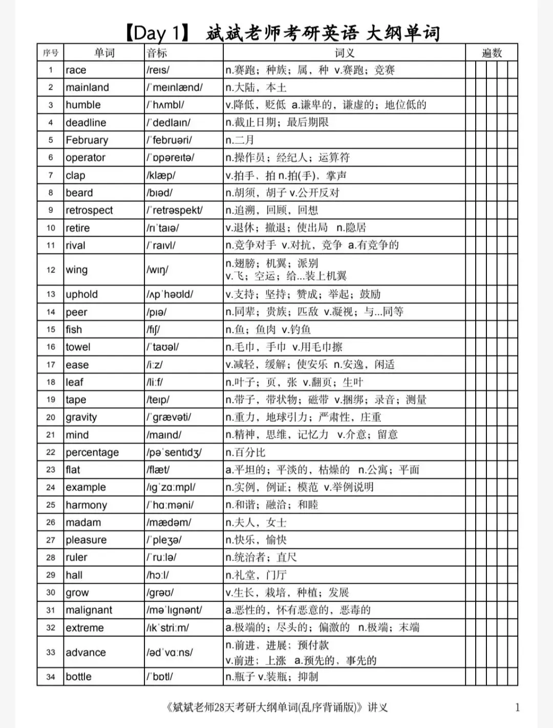 Hello! 今天给大家带来《28天考研大纲单词》