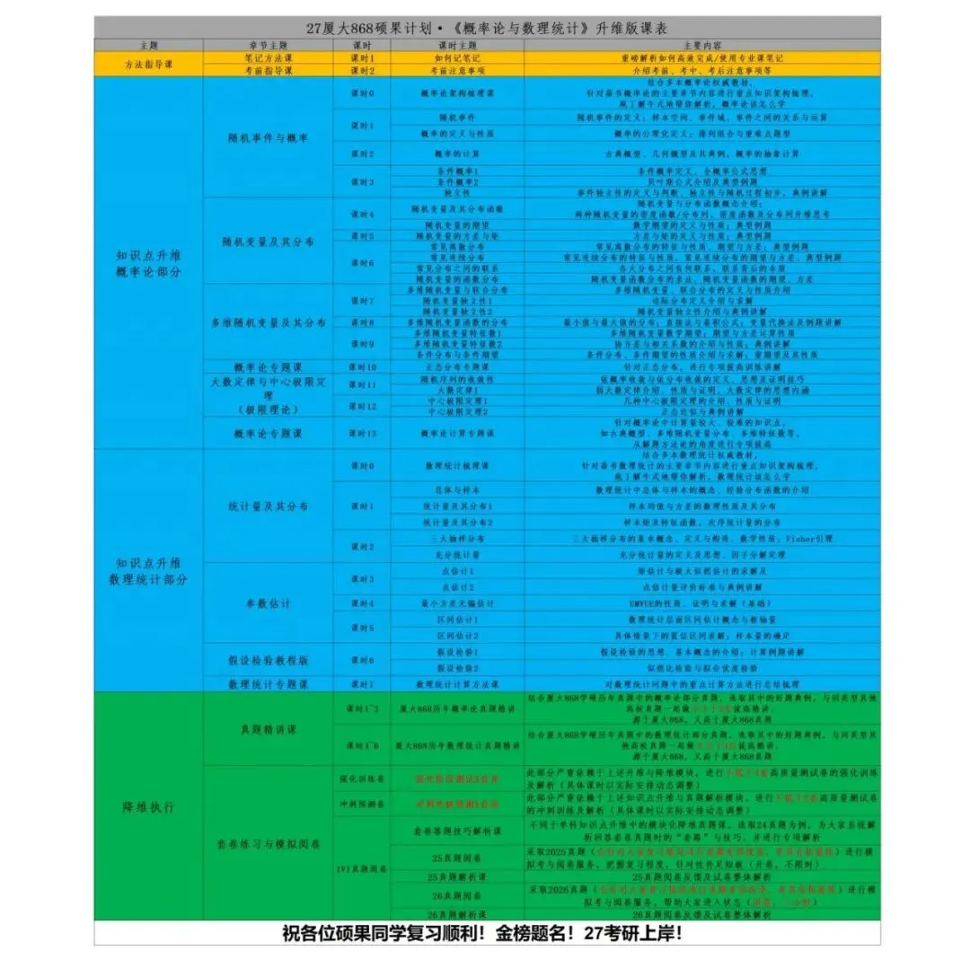 同时,针对厦大868的重点考察内容——概率论与数理统计,27厦大868学硕硕果计划在过往概统升维知识点课程基础上,进一步升级,结合硕果330题集,帮助大家升维降维双驱动,真正掌握概统知识点,迈出拿下高分的关键一步: