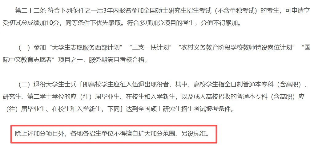 教育部在《2026年全国硕士研究生招生工作管理规定》中,“参与‘选聘高校毕业生到村任职’项目的考生,在初试阶段可享受15分的加分优惠”这一加分政策被取消。