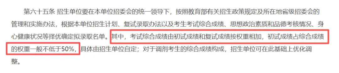 教育部在《2026年全国硕士研究生招生工作管理规定》中明确指出:初试成绩占综合成绩的权重一般不低于50%。