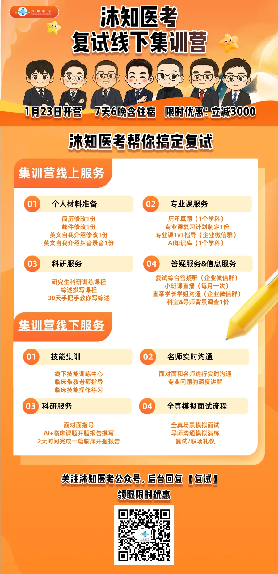 初试落下帷幕,考研的真正决赛——复试已悄然来临。当别人还在焦虑、观望、不知从何下手时,沐知医考26考研复试集训营已正式开营!