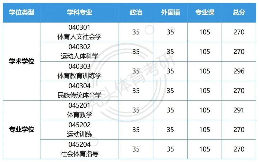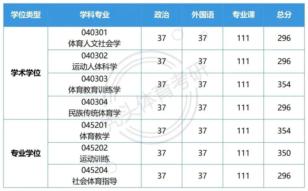 体育学硕中的体育教育训练学专业超国家线26分,其他专业与国家线平齐;