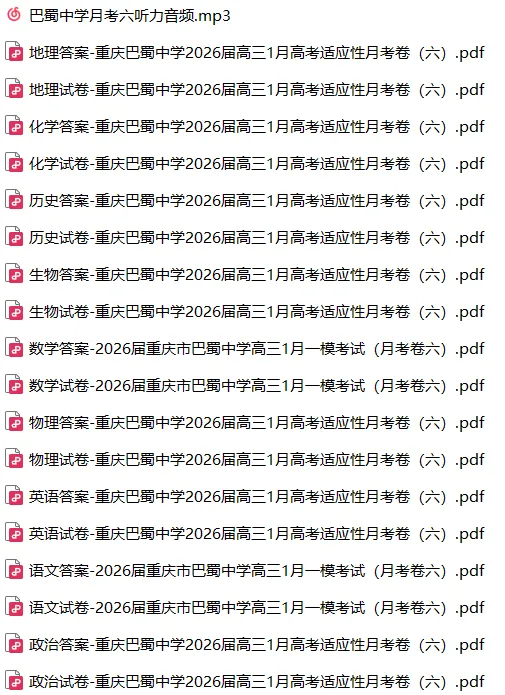 2026届重庆市巴蜀中学高三1月一模考试(月考卷六)(全科)