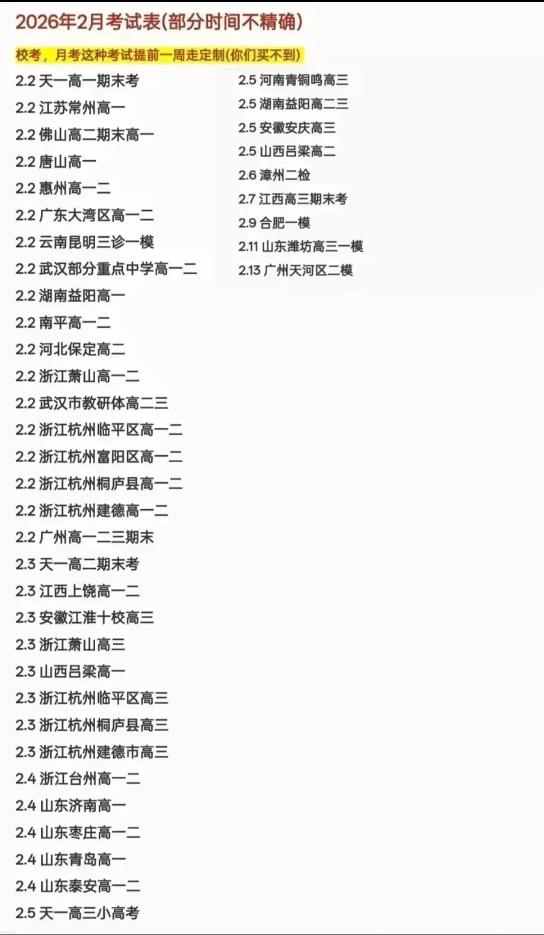 1月下旬/2月期末考试答案公布啦(未提到的不代表没有)各地省份专区都有安排可联系客服查看时间表