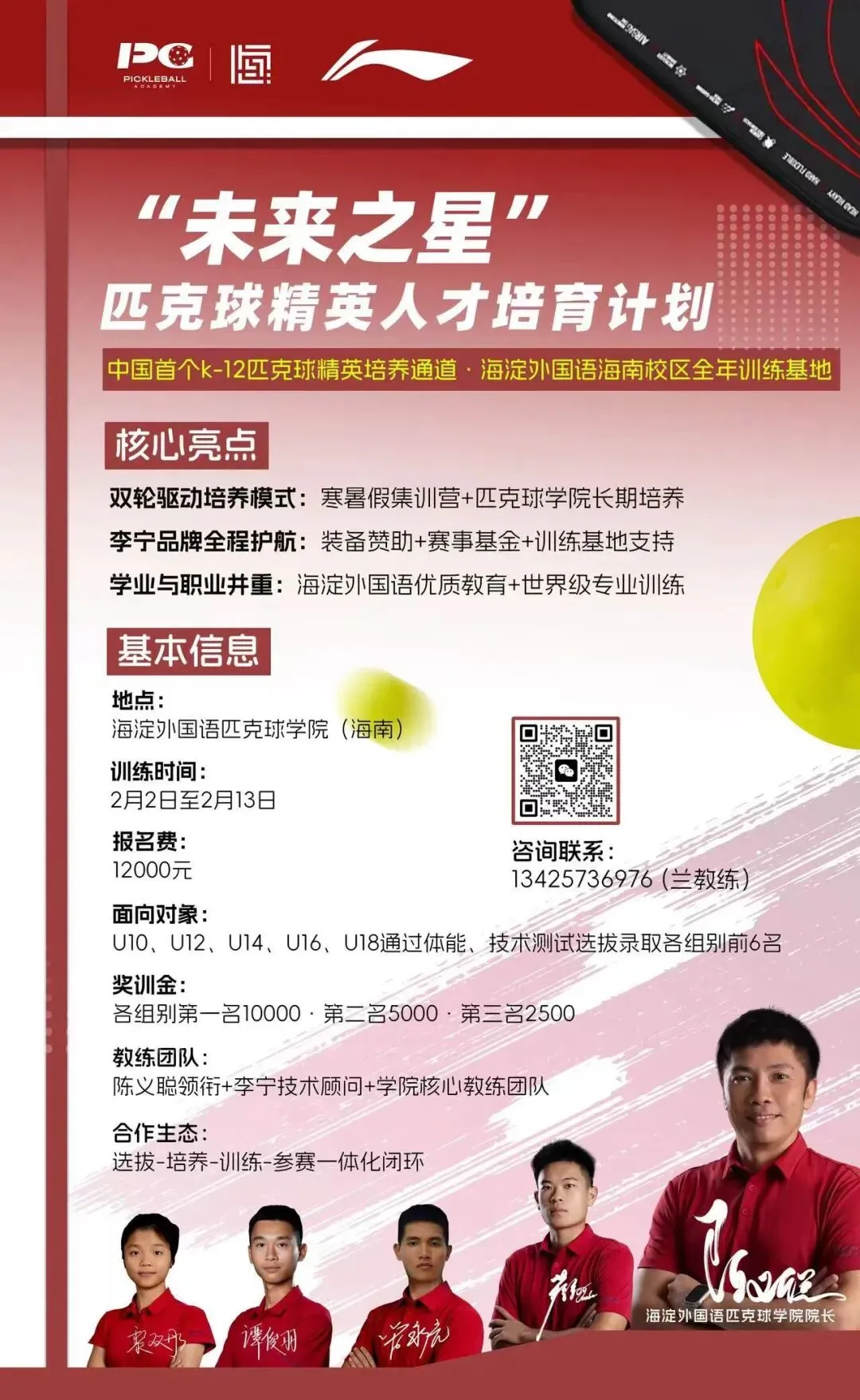 李宁×海淀外国语强强联合!“未来之星”匹克球训练营招募开启!