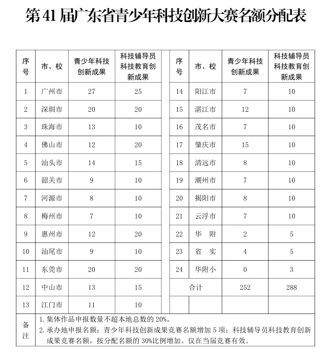 ①各地市推荐参加省级比赛的项目须参加基层组织的活动,在本地组织的竞赛活动中评选推荐。请按规定名额和要求报送参赛项目,具体名额分配如下👇