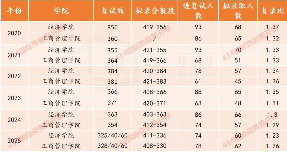 中南财经政法大学历年复录比