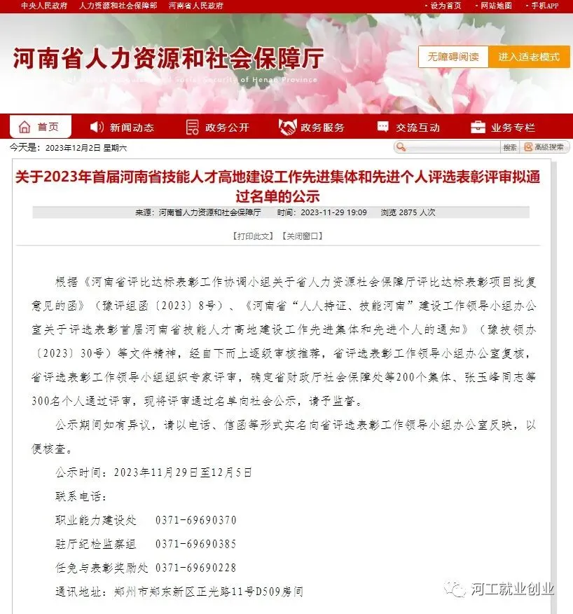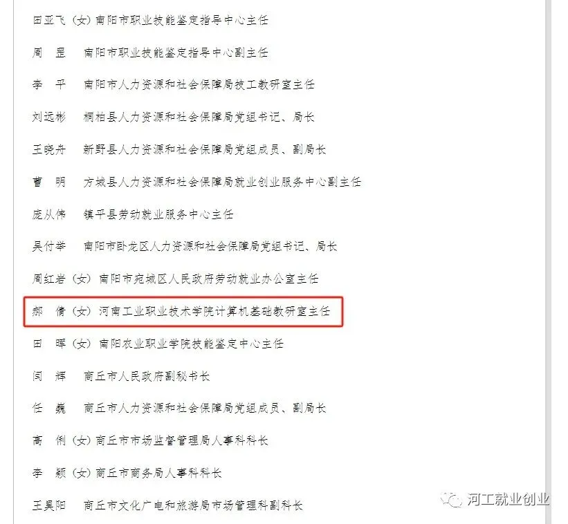 近日,河南省人力资源和社会保障厅发布《关于2023年首届河南省技能人才高地建设工作先进集体和先进个人评选表彰评审拟通过名单的公示》,我校教务处荣获“2023年首届河南省技能人才高地建设工作先进集体”,电子信息工程学院郝倩同志被评为“2023年首届河南省技能人才高地建设工作先进个人”。