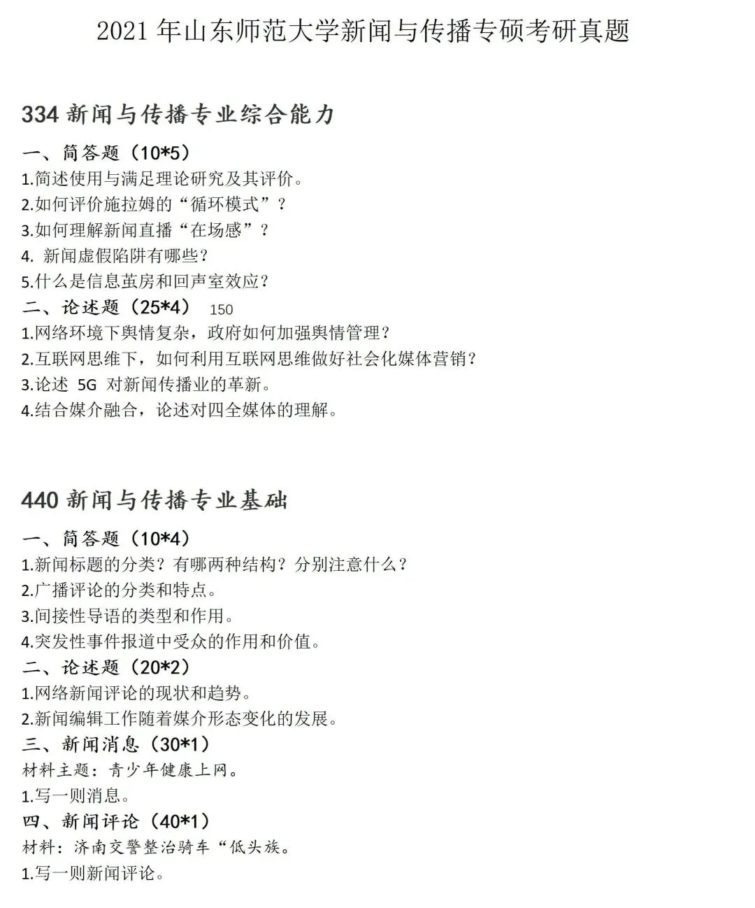 山东师范大学新闻与传播考研真题2021