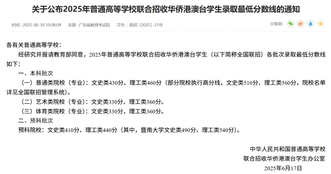 大家关心的录取分数线来了~