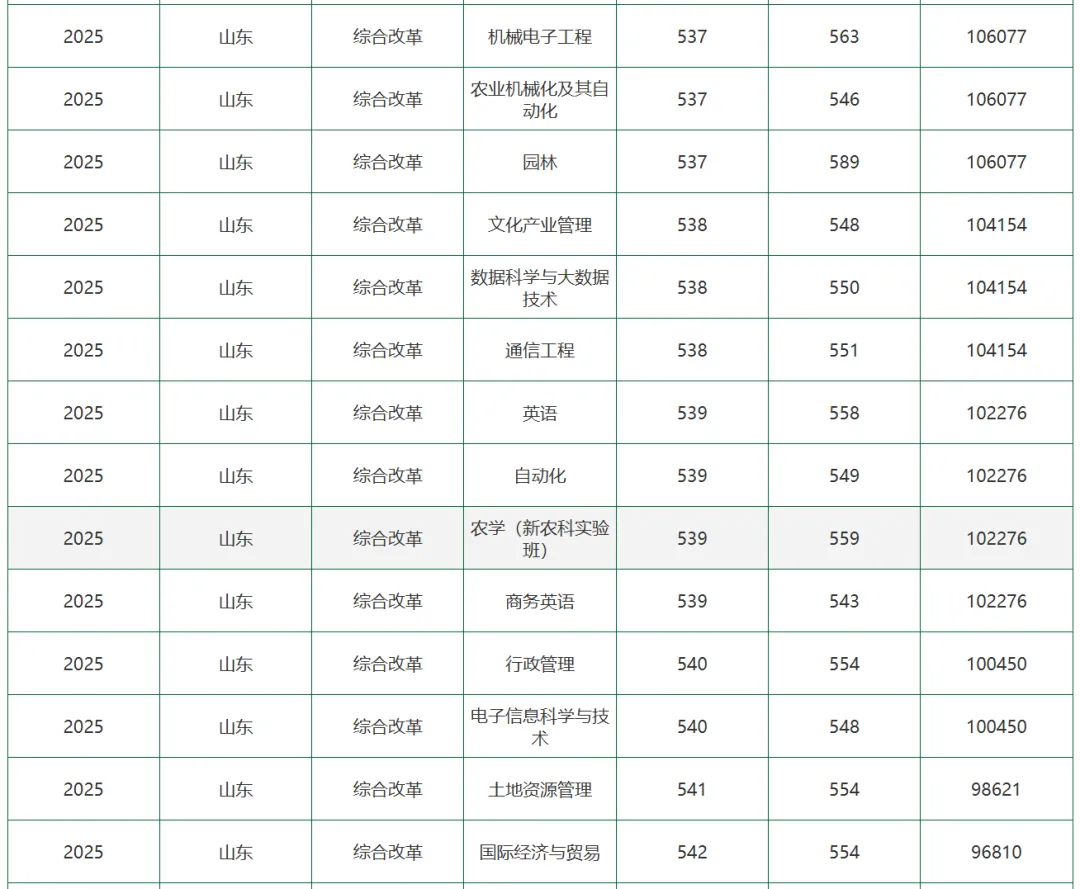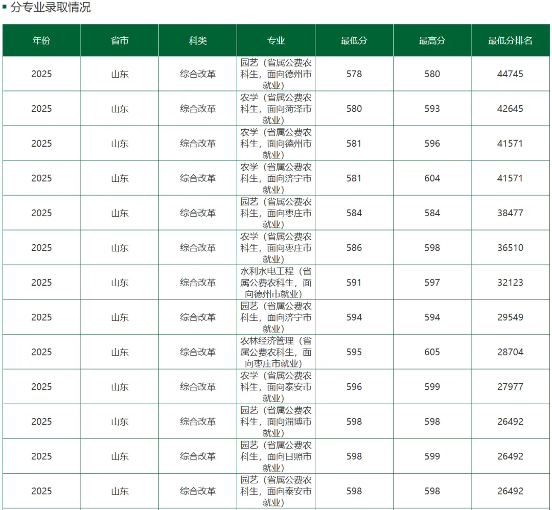 整体来看,山东农业大学2025年在山东省的录取情况呈现出生源质量稳步提升、高分段生源大幅增加、生源结构更加优化的良好态势。